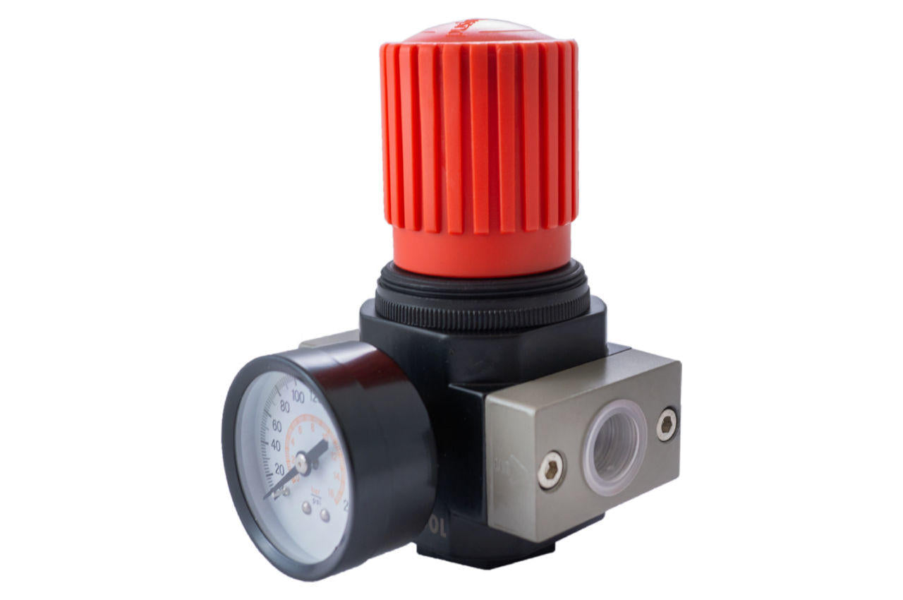 Регулятор давления позволяет быстро настроить необходимое рабочее давление в воздушной магистрали и поддерживает его с постоянным значением. Корпус редуктора изготовлен из прочного металла высокого качества не подверженного коррозии, что гарантирует долгий срок службы и высокое эксплуатационное давление. Манометр с точной двойной шкалой PSI, bar в металлическом корпусе, с максимальным значением 16 бар. Может быть установлен с двух сторон редуктора при необходимости. Вы легко установите регулятор в нужном положении - на корпусе размещены указатели направления движения воздуха. Редуктор устанавливают как можно ближе к потребителю воздуха или непосредственно на выходе из компрессора. В комплекте поставляется крепеж для монтажа на вертикальные поверхности. Имеет 2 внутренние резьбы для подключения, диаметром 1/2". В комплект не включены переходники. Диаметр резьбы: 1/2"; Пропускная способность: до 4000 л/мин; Рабочая температура: от -10 до +50 °С