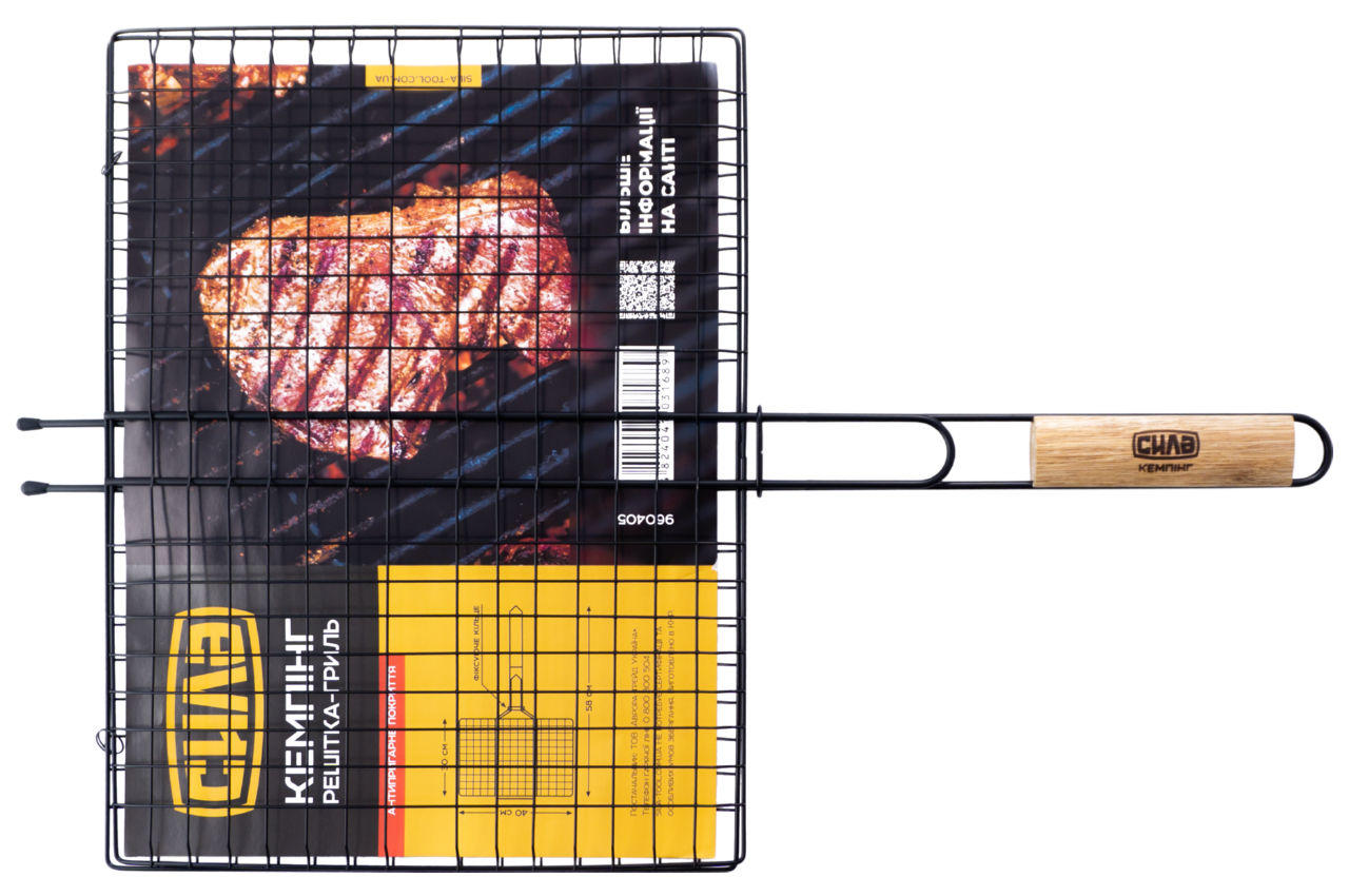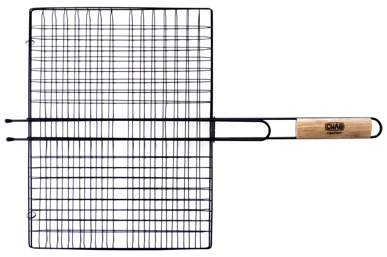 Решетка-гриль Сила - 400 x 300 мм антипригарная с ее помощью можно легко и быстро приготовить мясные стейки, рыбу и овощи на мангале. Благодаря антипригарному покрытию продукты не пригорают к решетке. Удобная ручка с деревянной вставкой не нагревается. Благодаря надежной фиксации и прижиму продукты прожариваются равномерно, а интересная форма переплетения прутьев придаст очень аппетитный вид готовому блюду.