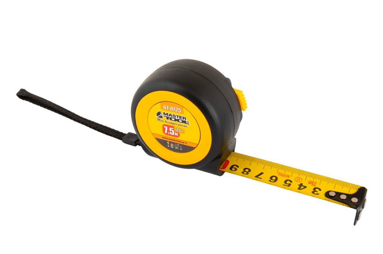 Рулетка Mastertool - 7,5м x 25мм магнит обрезиненная автостоп