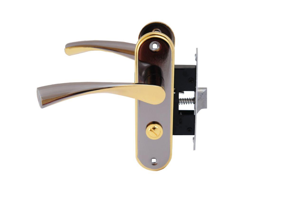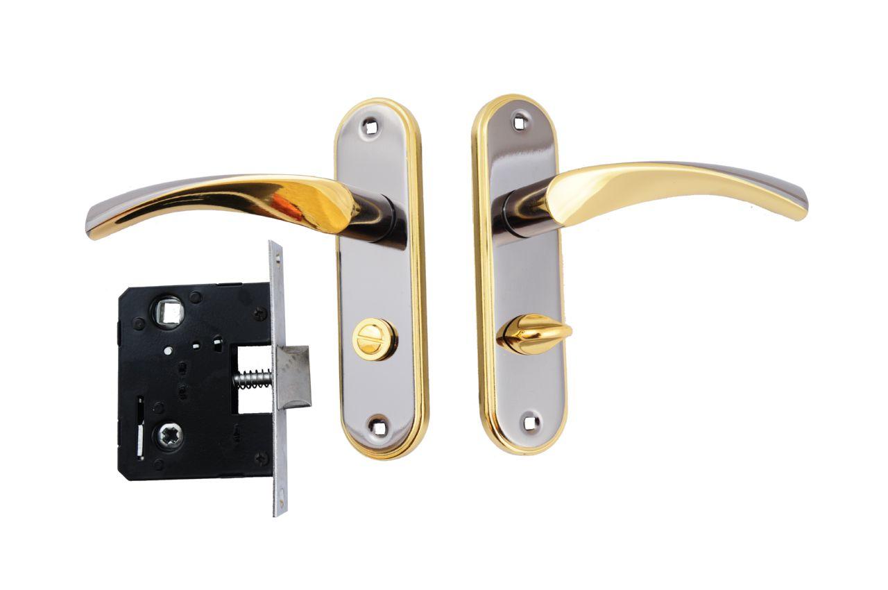 Ручка дверная на планке в комплекте с врезным замком под фиксатор. Материал: металл-планка/алюминий-ручка.