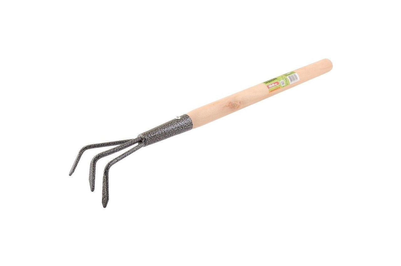 • Ручка: Удлиненная ручка из натурального дерева, гладко отшлифованная, обеспечивает комфортный хват и дополнительный рычаг для удобного рыхления.