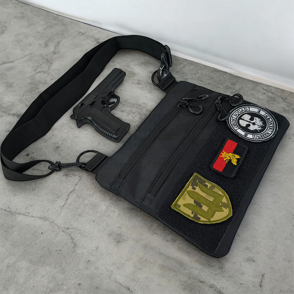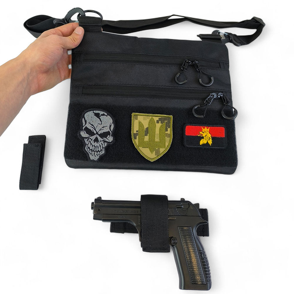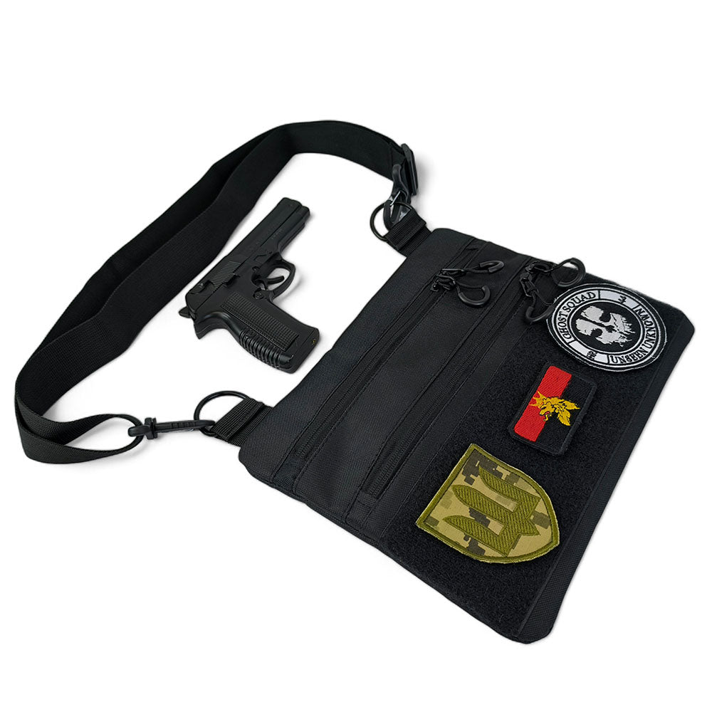 Эта элегантная и практичная тактическая сумка-кобура в черном цвете является отличным решением для скрытого ношения пистолета. Изготовленная из высококачественной ткани кордура сумка сочетает в себе прочность и стиль, идеально подходя для повседневного использования. Размер сумки 30 х 24 см обеспечивает оптимальный баланс между компактностью и емкостью.