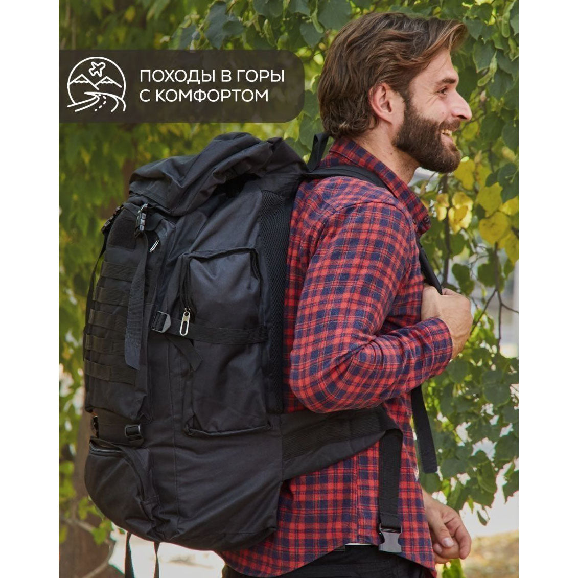 Рюкзак тактический чорний 4в1 70 л + Подсумок Водонепроницаемый туристический рюкзак. Цвет: черный