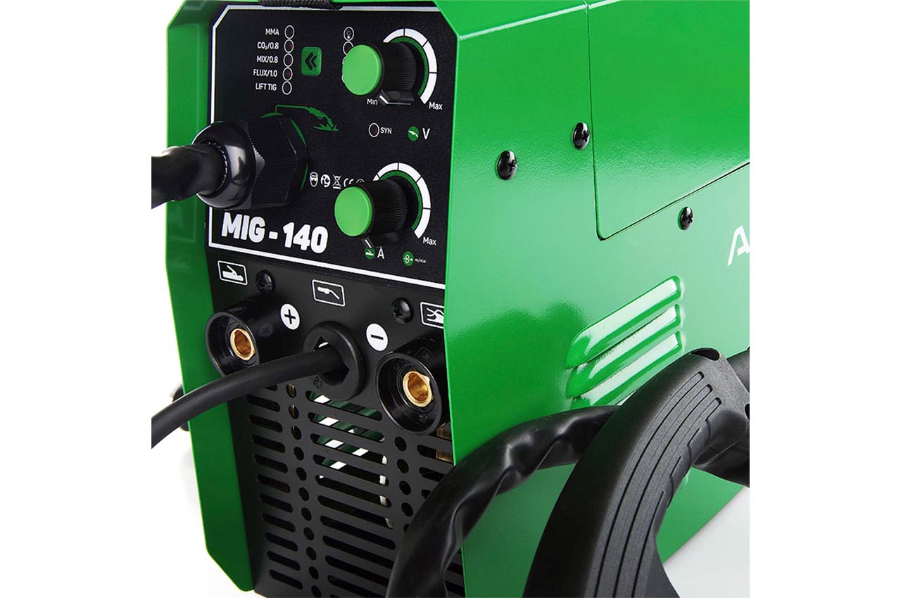 - МIG-140 оснащен системой регулирования тока, позволяющей выполнять возможность выполнения таких типов сварки как MIG, MAG, MMA, TIG LIFT.