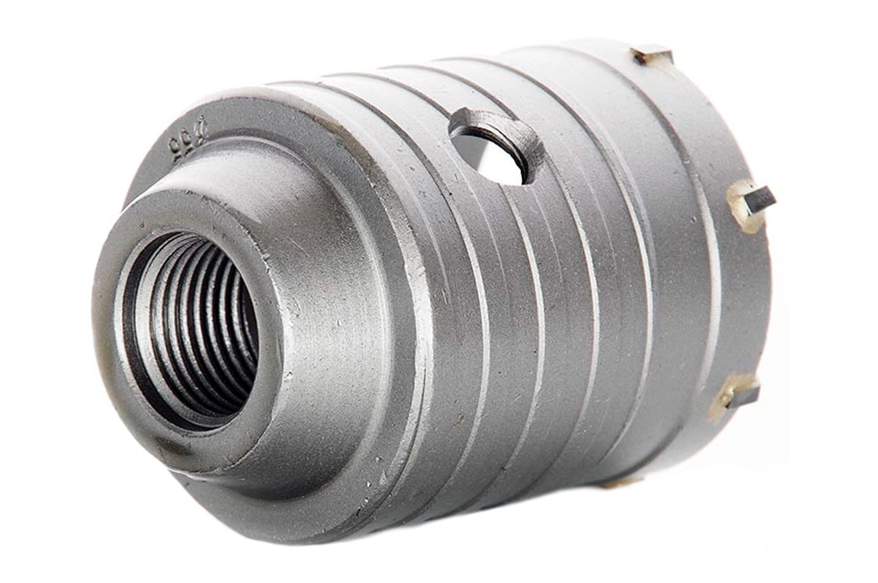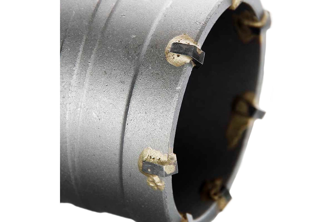 Сверло корончатое по бетону Apro применяется для сверления больших отверстий в бетоне, кирпиче, керамической облицовочной плитке, граните, гипсовых плитах. Зубы из твердого сплава обеспечивают быстрое измельчение обрабатываемого материала. Диаметр 55 мм.