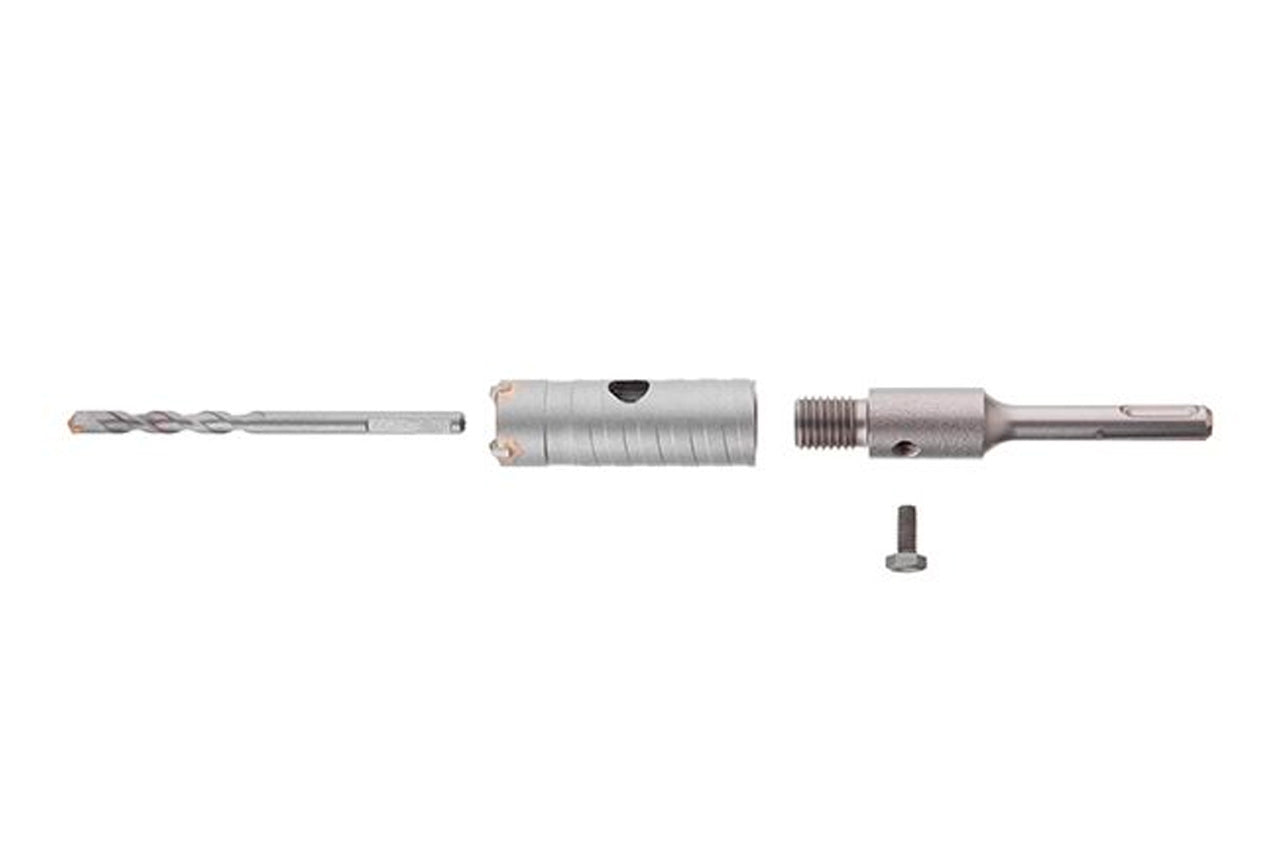 Сверло корончатое (фреза) по бетону "Intertool" с твердосплавными победитовыми напайками, напрвляющим сверлом и хвостовиком SDS+. Предназначена для сверления отверстий в прочных абразивных материалах, таких как кирпич, бетон, пенобетон, камень и пр. Материал - сталь 40Cr. Диаметр сверления - 26 мм. Длина хвостовика - 100 мм.