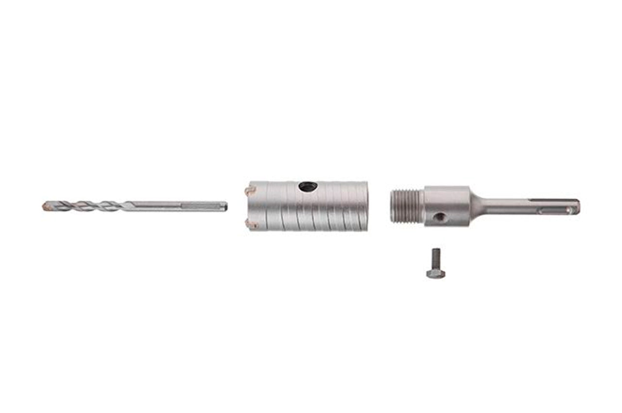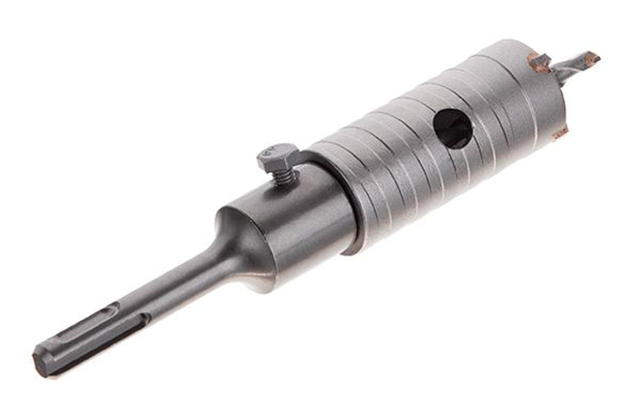 Сверло корончатое (фреза) по бетону "Intertool" с твердосплавными победитовыми напайками, напрвляющим сверлом и хвостовиком SDS+. Материал - сталь 40Cr. Диаметр сверления - 32 мм, длина хвостовика - 100 мм. Применение: для кирпича и бетона;