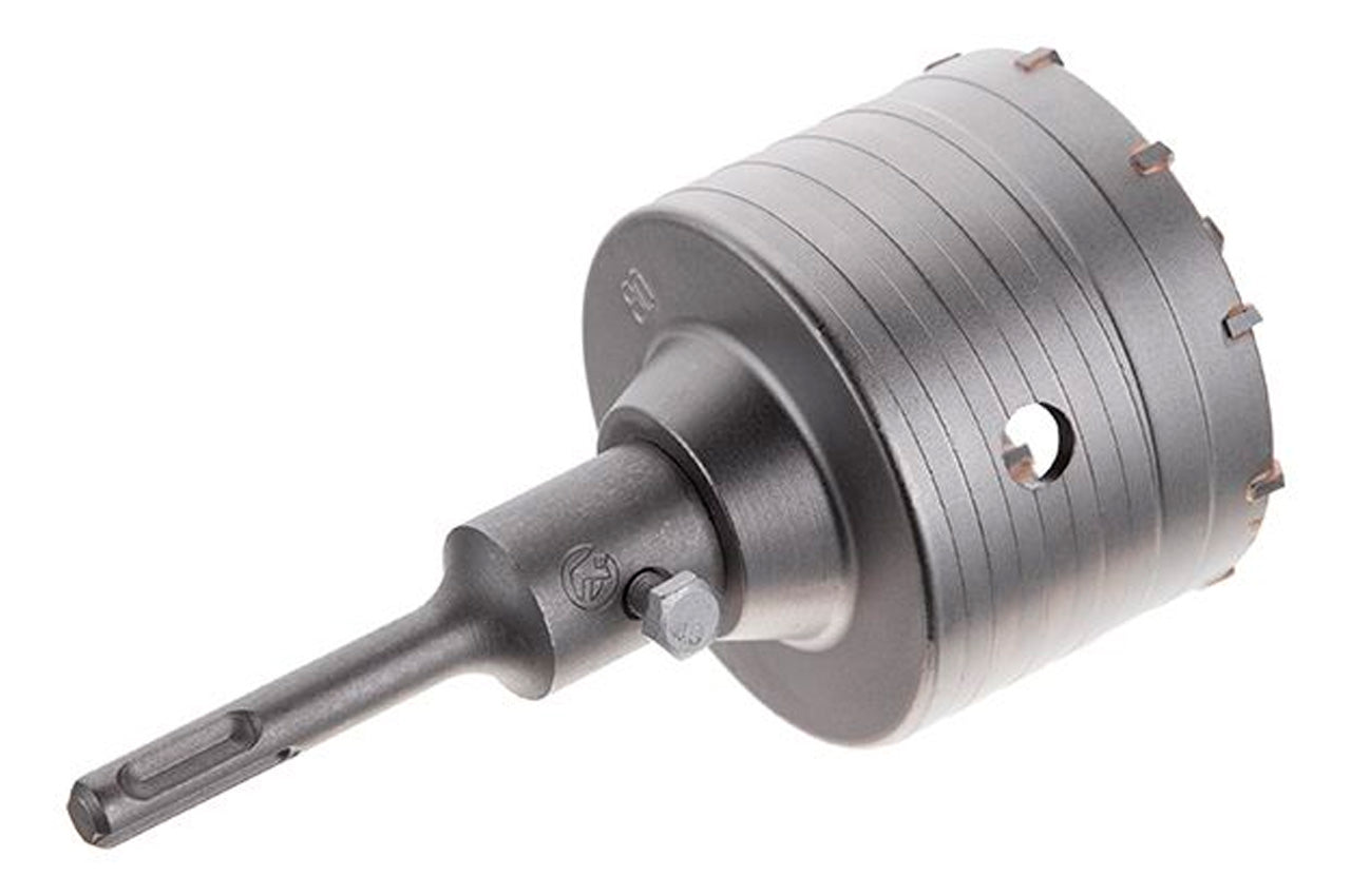 Сверло корончатое (фреза) по бетону "Intertool" с твердосплавными победитовыми напайками, напрвляющим сверлом и хвостовиком SDS+. Материал - сталь 40Cr. Диаметр сверления - 80 мм, длина хвостовика - 100 мм. Применение: для сверления отверстий в прочных абразивных материалах, таких как кирпич, бетон, пенобетон, камень и пр.