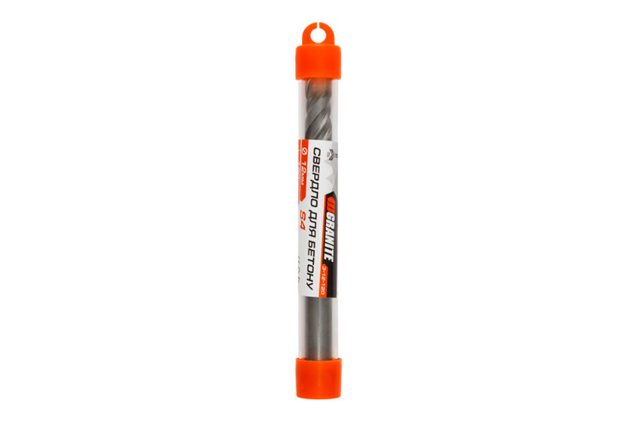 Сверло по бетону S4 "Granite" с цилиндрическим хвостовиком и твердосплавной напайкой. Диаметр сверления - 12 мм, длина сверла - 120 мм.