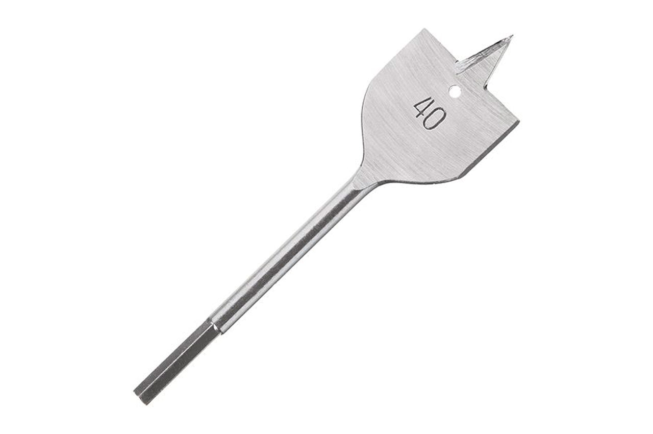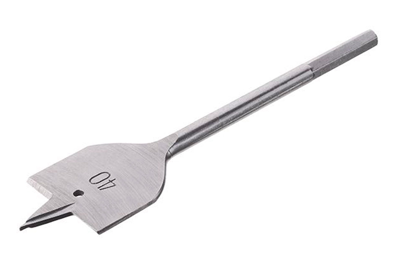 Сверло по дереву перьевое "Intertool" с цилиндрическим хвостовиком. Диаметр сверления - 40 мм, длина сверла - 150 мм. Диаметр сверла: 40 мм; Длина сверла: 150 мм