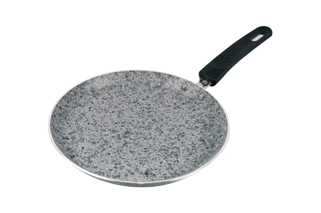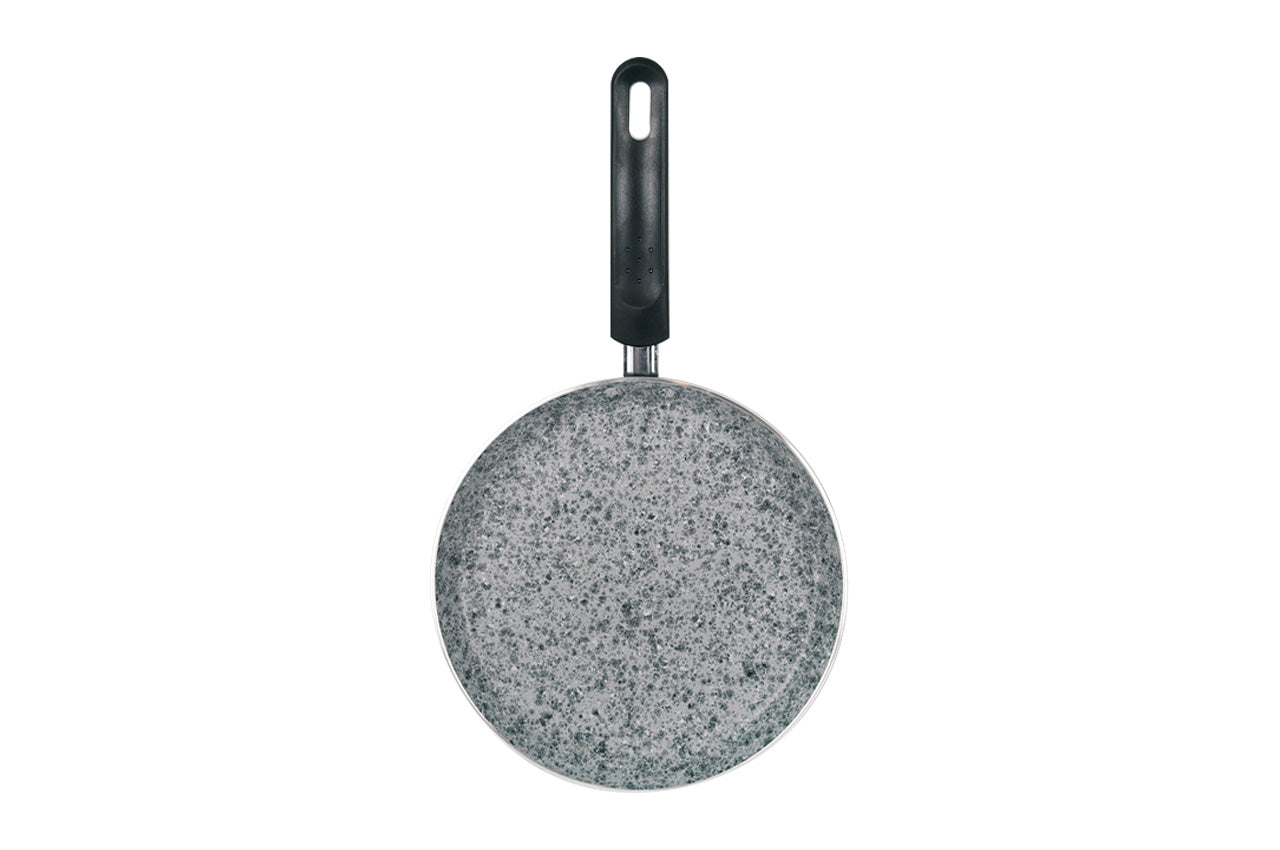Сковорода антипригарная блинная Maestro диаметром 220 мм из литого алюминия в помощь хозяюшкам. Едва заметный вес изделия позволяет подбрасывать десерты на высоту 10-20 см от разгоряченной поверхности излюбленный трюк профессиональных кондитеров. Усиленное гранитное покрытие в разы повышает устойчивость посуды к ударам и царапинам. Готовить можно с минимальным количеством масла. Безопасность хвата в любом положении сковороды обеспечивает термостойкая ручка из пластика. Кроме блинчиков в ней удобно выпекать пышные капкейки, коржики, оладьи и дрожжевое тесто для пиццы.