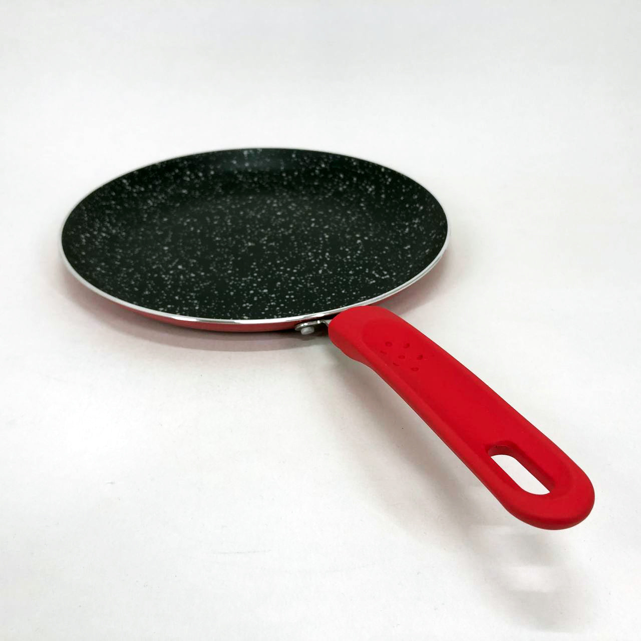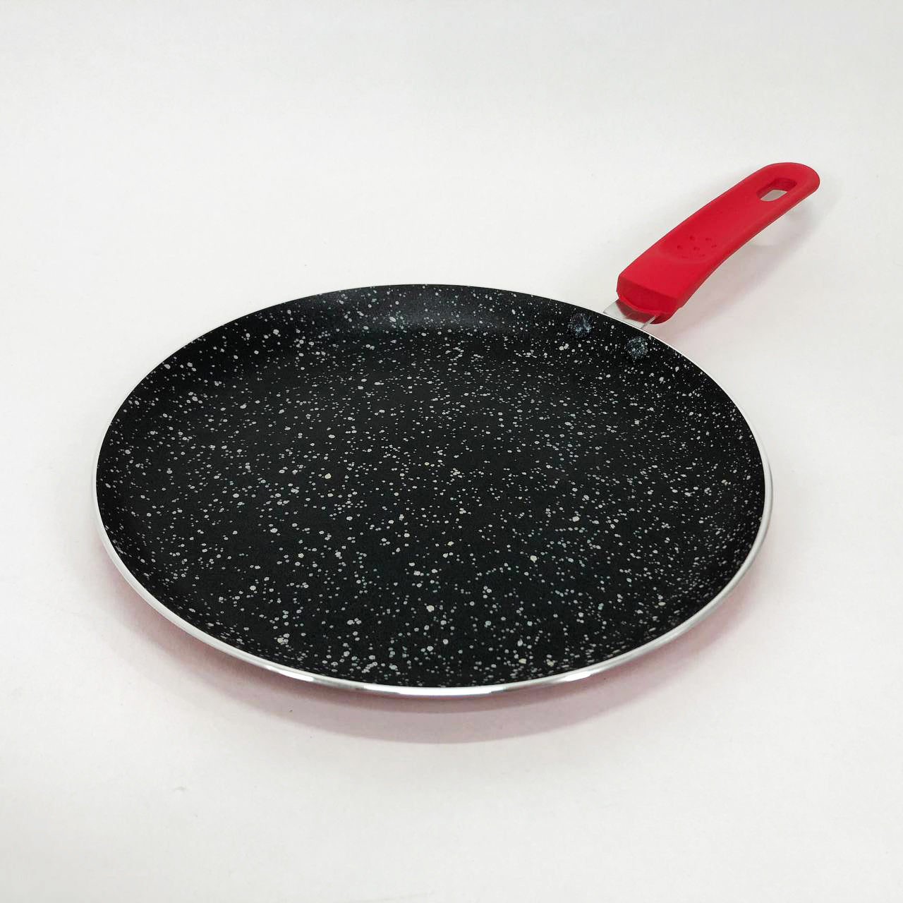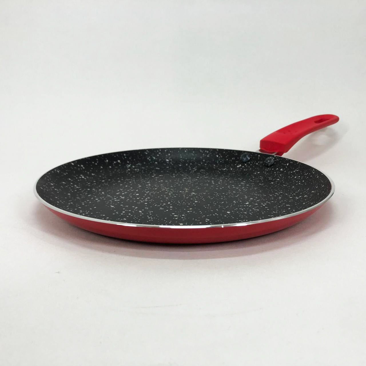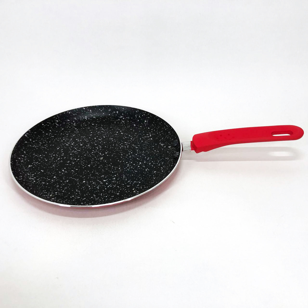 - Утолщённый алюминиевый корпус равномерно распределяет температуру по всей поверхности сковороды