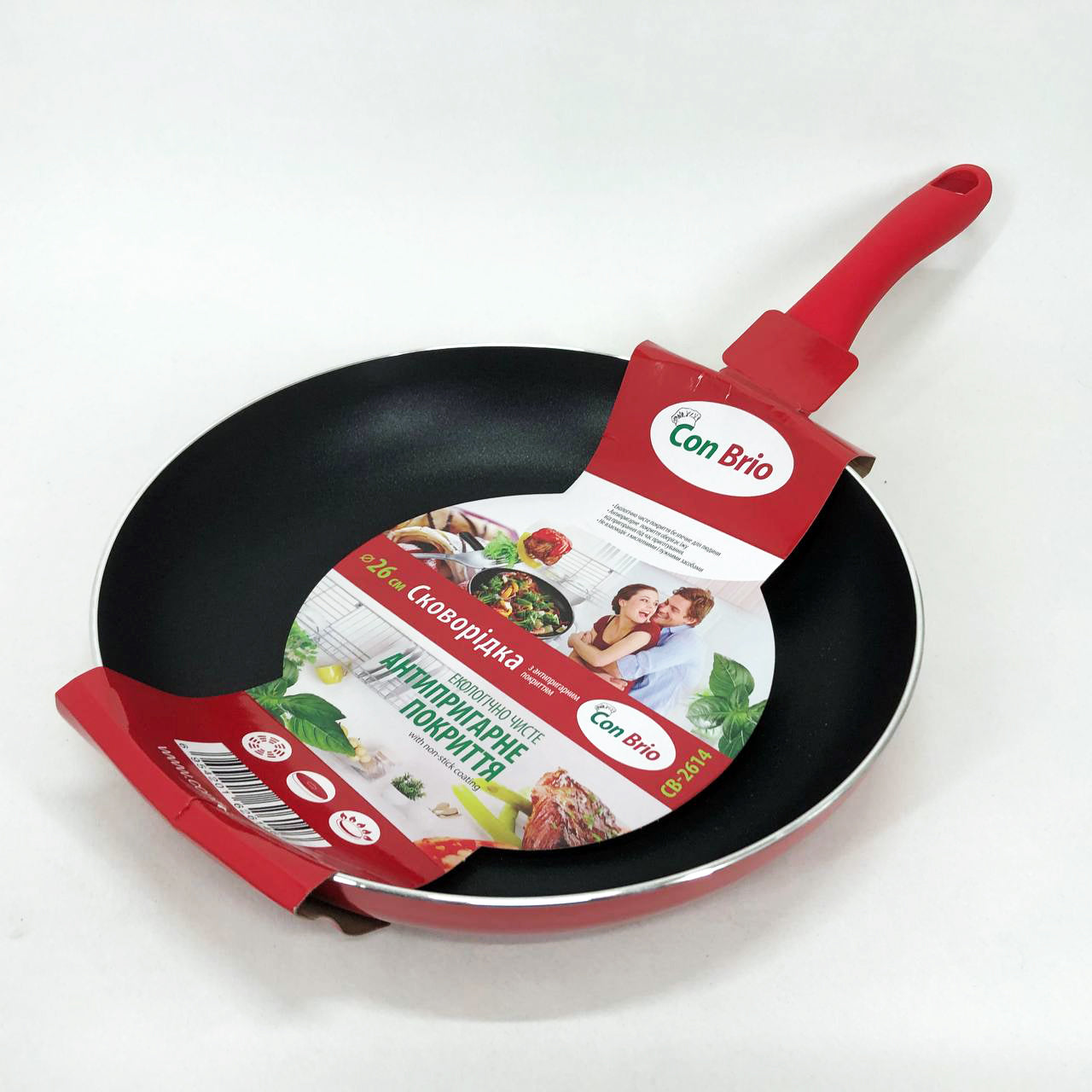 Сковорода без крышки Con Brio 26 см 2614-СВ червона - практичная и стильная сковорода без крышки диаметром 26 см. Изготовлена из высококачественных материалов.
