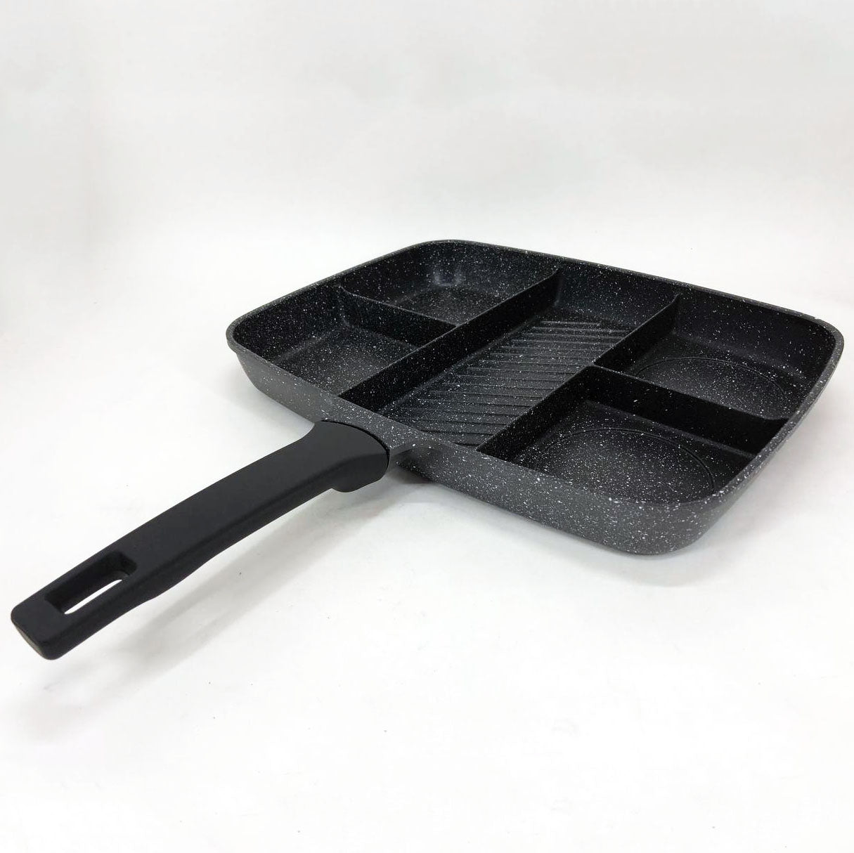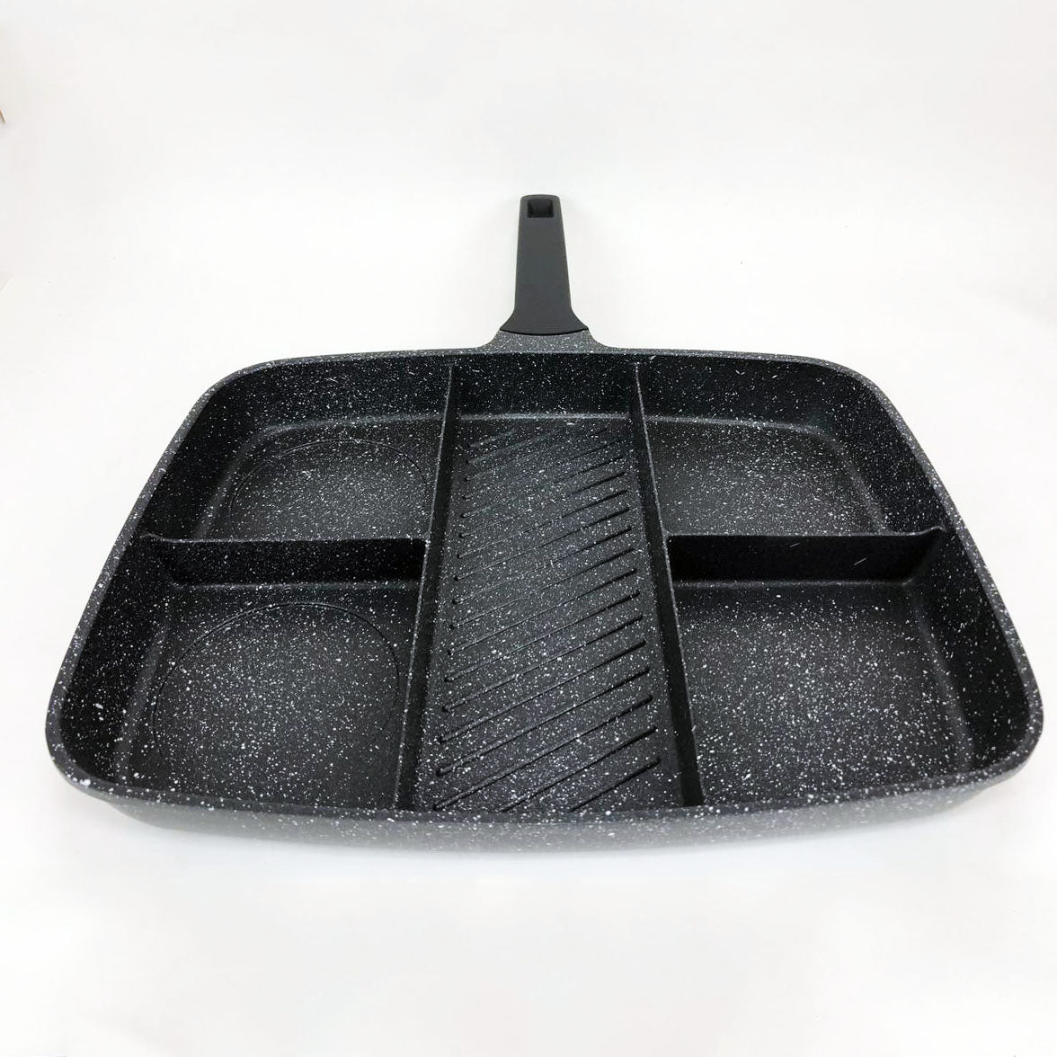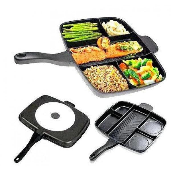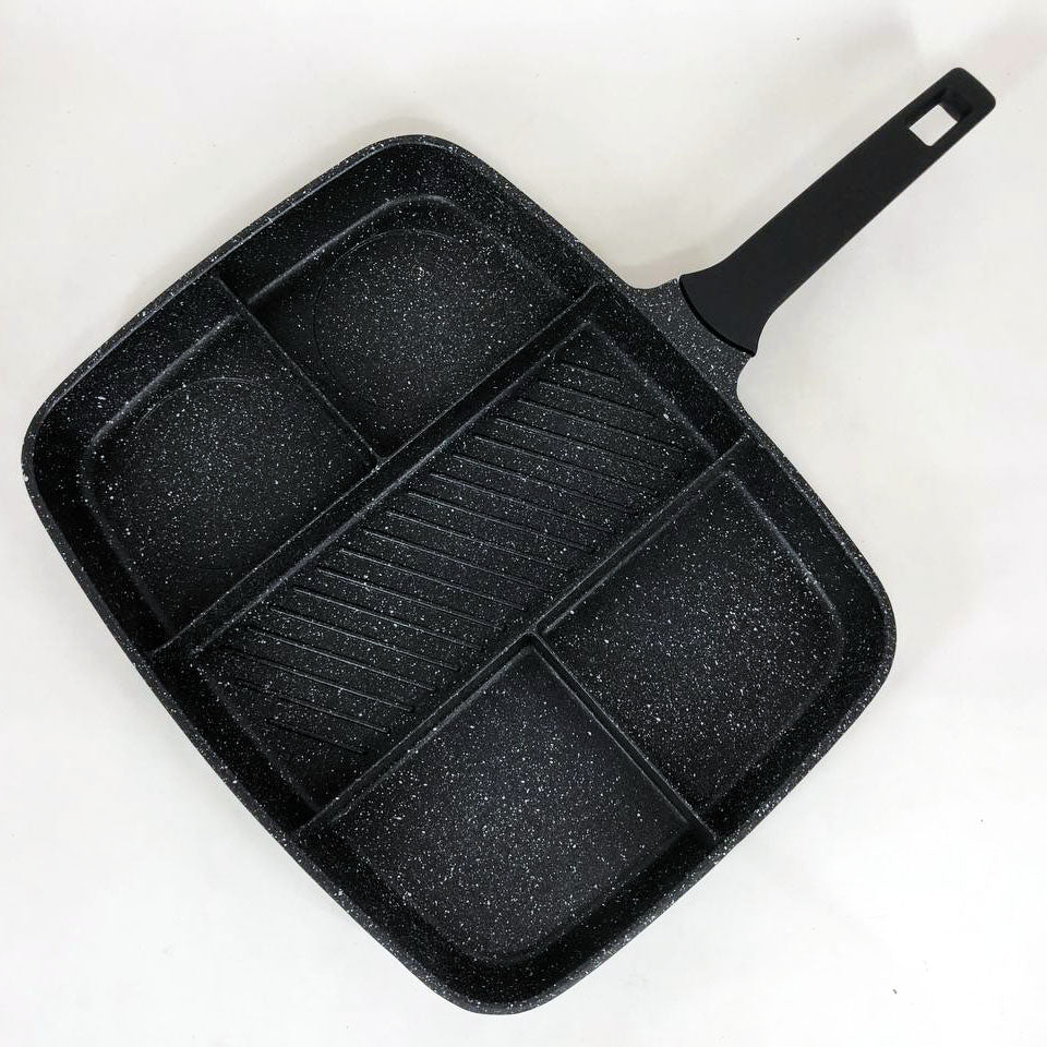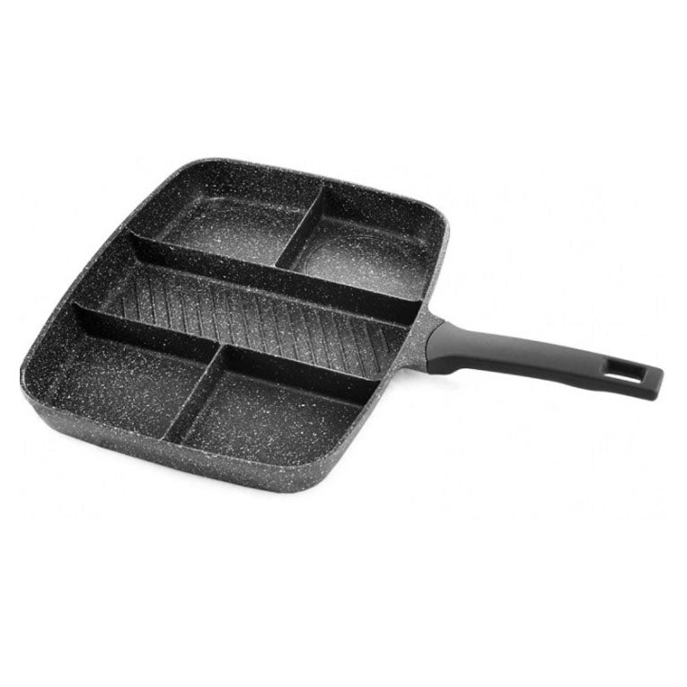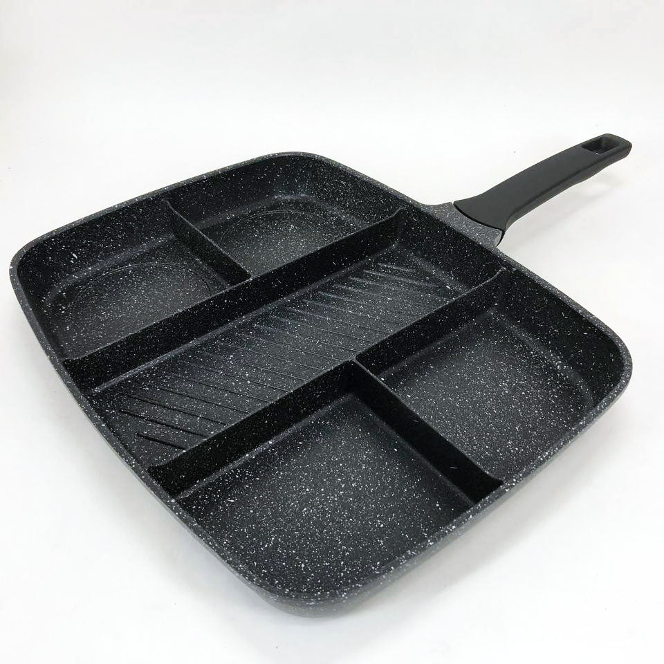 Имеет прочную антипригарную поверхность. Пять глубоких отсеков позволят легко приготовить пять различных продуктов легко, в одно и то же время.