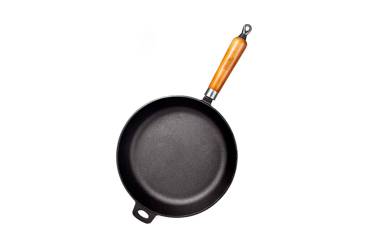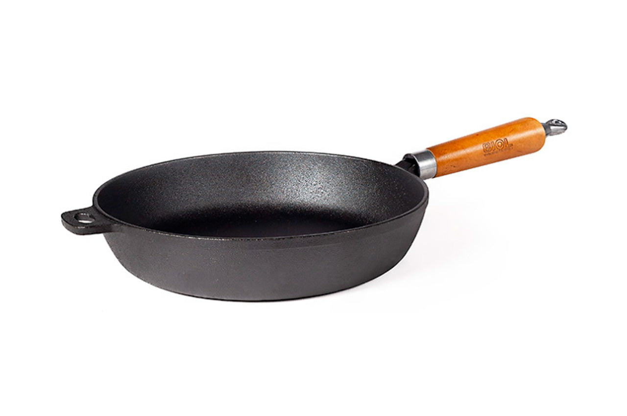 Сковорода чугунная Biol - 240мм. Классический корпус подходит для приготовления любых блюд. Высокая теплоемкость чугуна позволит получить не только аппетитную корочку, но и равномерное приготовление всего блюда. Деревянная ручка значительно упростит эксплуатацию этой сковороды.