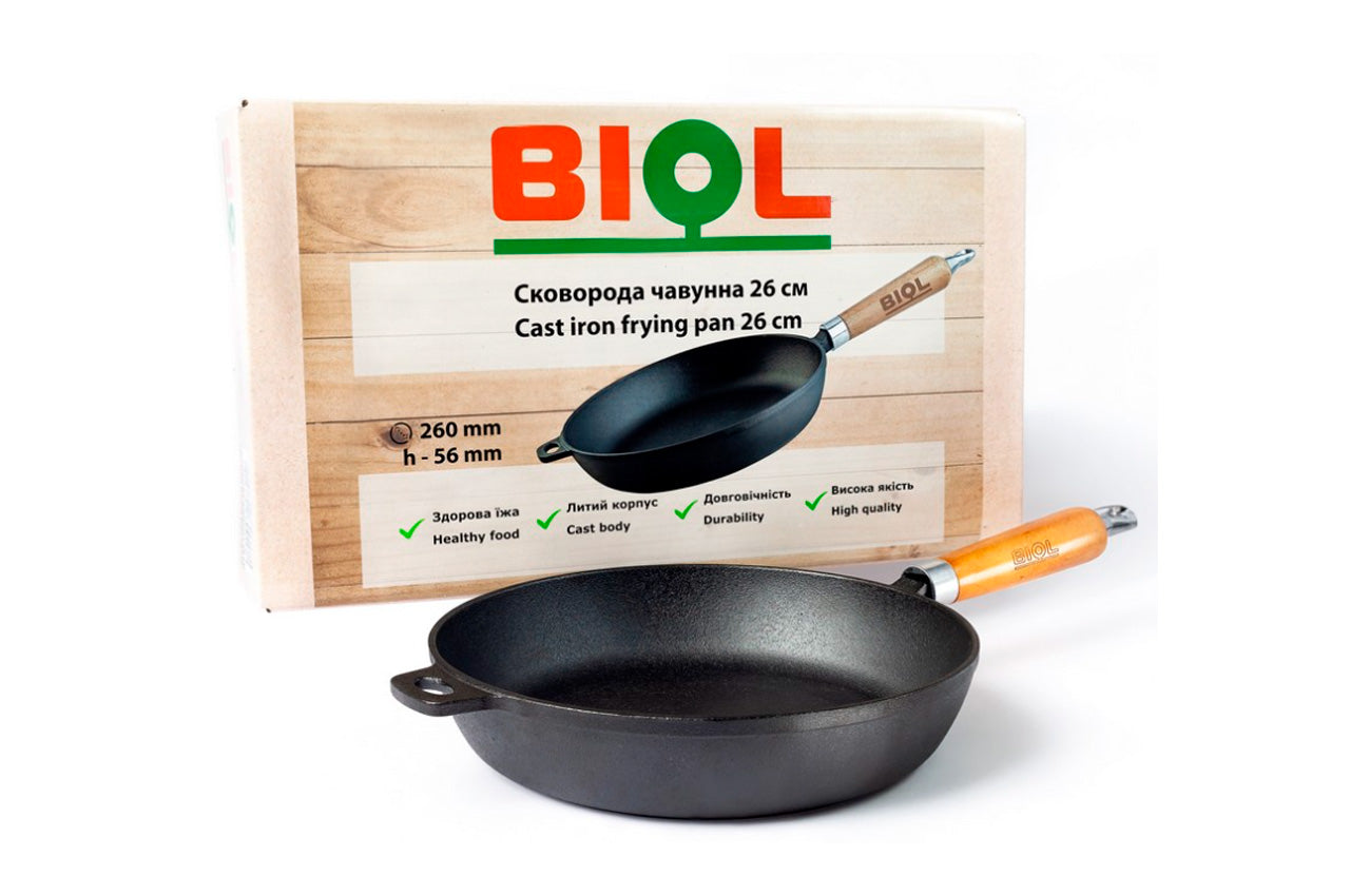 Сковорода чугунная Biol - 280мм. Классический корпус подходит для приготовления любых блюд. Высокая теплоемкость чугуна позволит получить не только аппетитную корочку, но и равномерное приготовление всего блюда. Деревянная ручка значительно упростит эксплуатацию этой сковороды.