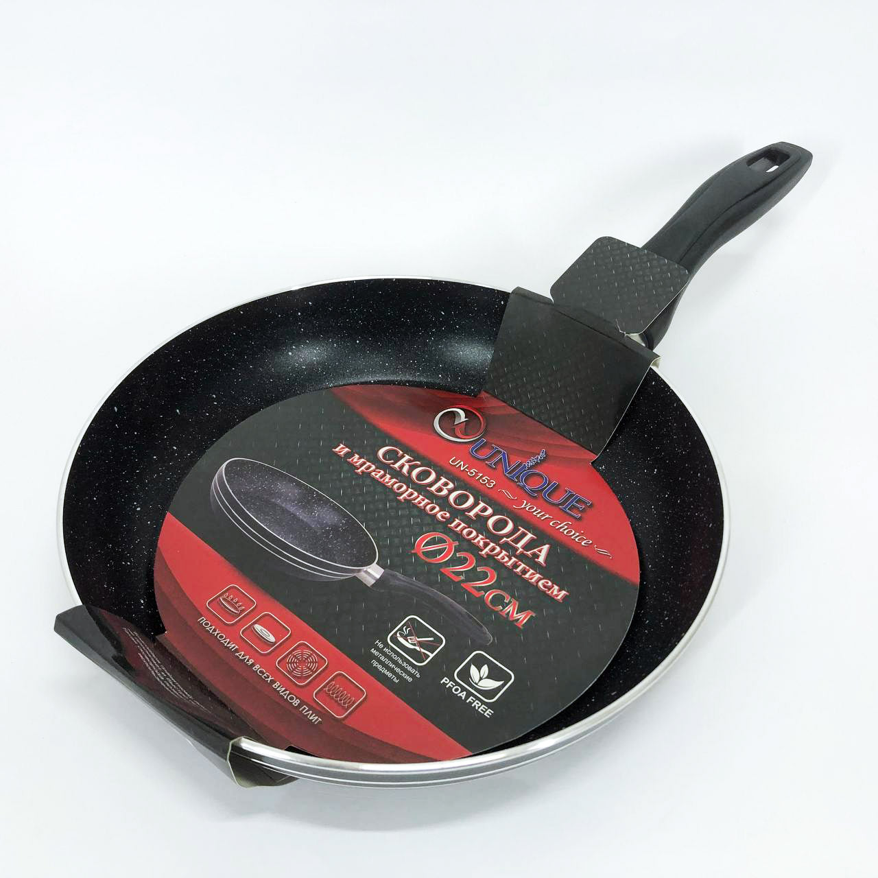 Сковорода 22 см темный мрамор UNIQUE UN-5153 | Антипригарная сковорода | Мраморная сковорода