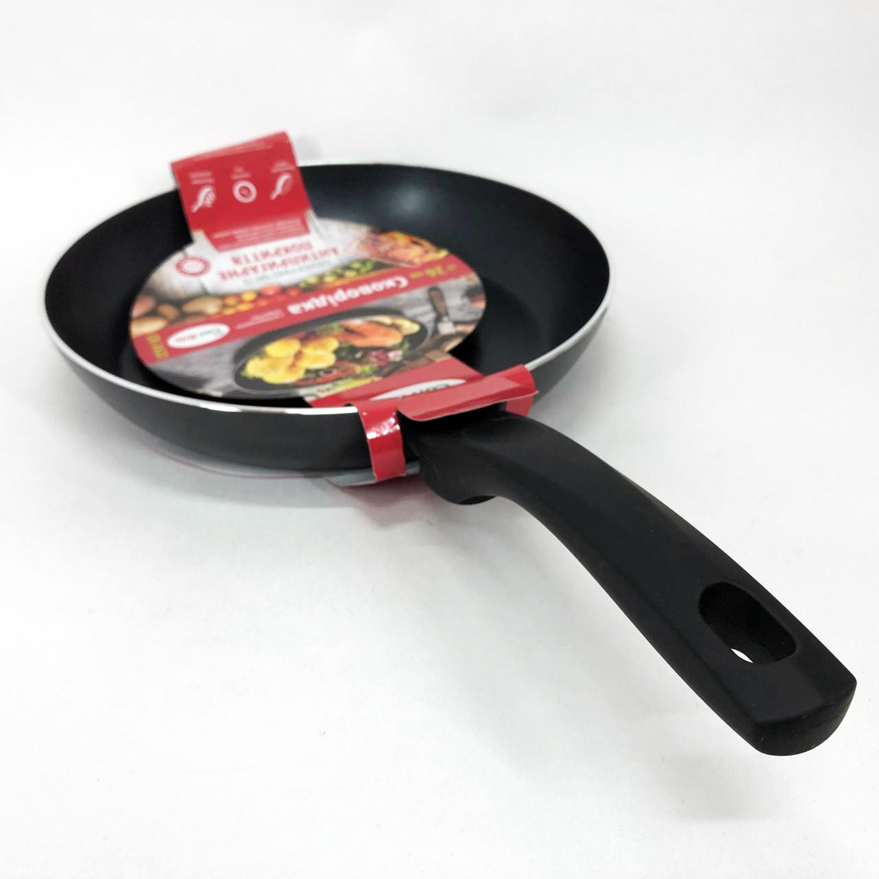 • Утолщённый алюминиевый корпус равномерно распределяет температуру по всей поверхности сковороды