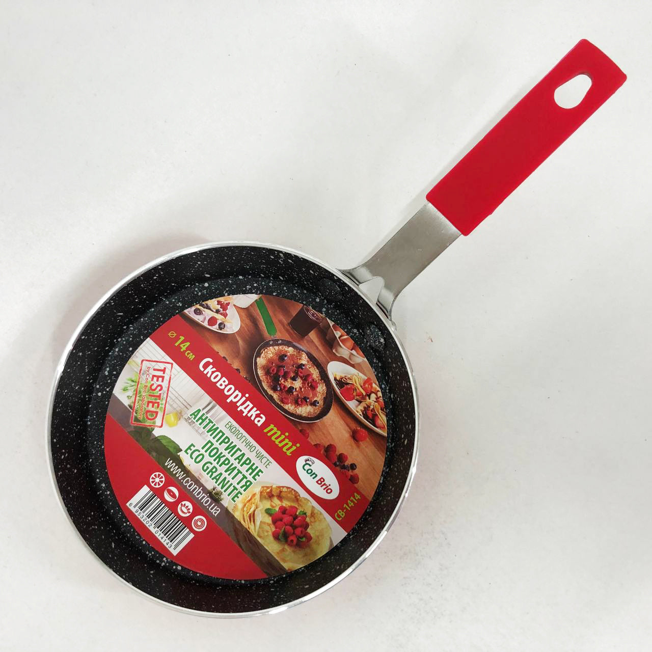 Сковорода Con Brio CB-1414, 14см, Мини, Eco Granite, сковорода качественная на плиту. Цвет: красный
