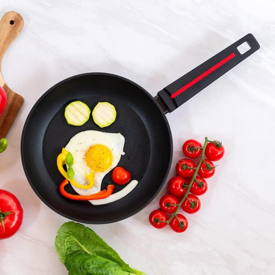 - Индикатор нагрева Да, QUICK FRY. По мере нагревания сковороды изменяется цвет индикатора. Как только сковорода достигает максимальной температуры, индикатор Quick Fry становится полностью красным, показывая, что достигнута равномерная и оптимальная температура для приготовления блюд