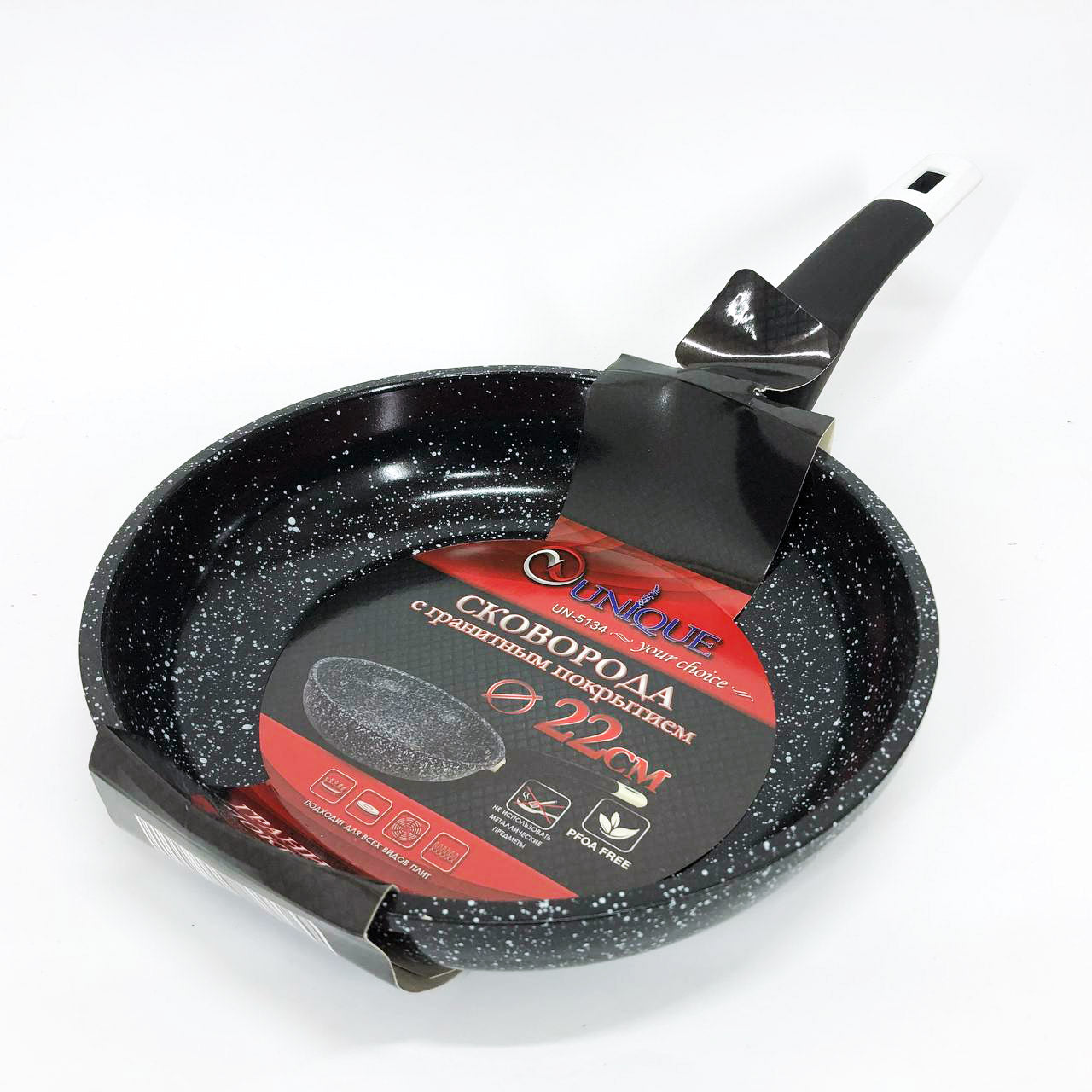 Сковорода UNIQUE UN-5134 22 см. без крышки, устойчивая к царапинам и сколам сковорода, с антипригарным покрытием