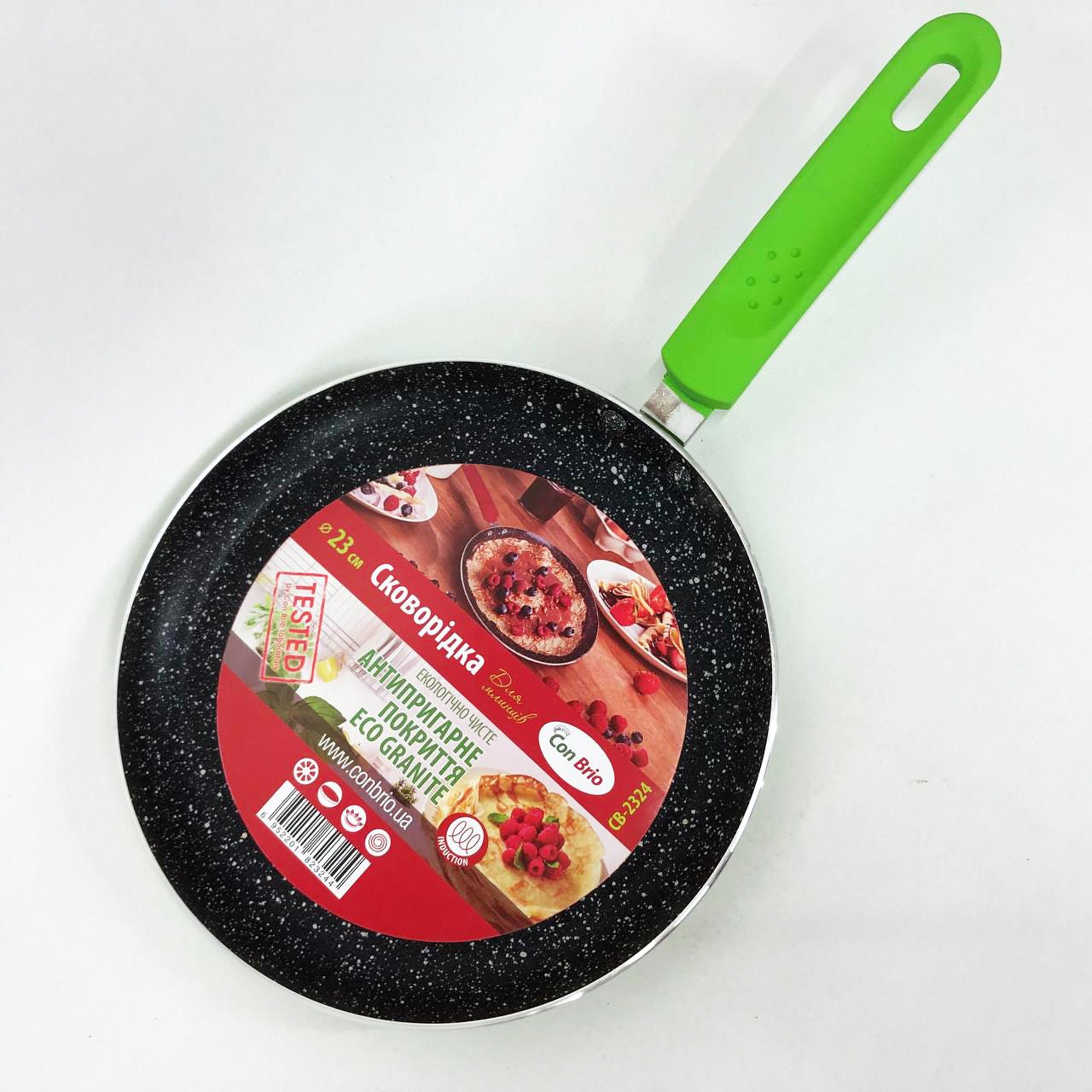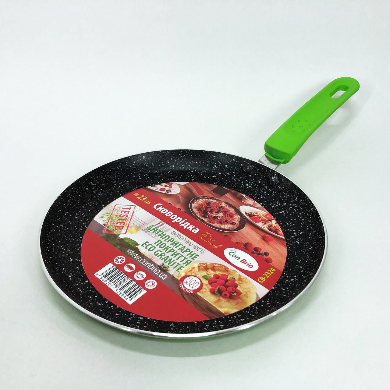 Сковородка для блинов 23 см Con Brio СВ-2324 Eco Granite, сковорода с индукционным дном. Цвет: зеленый