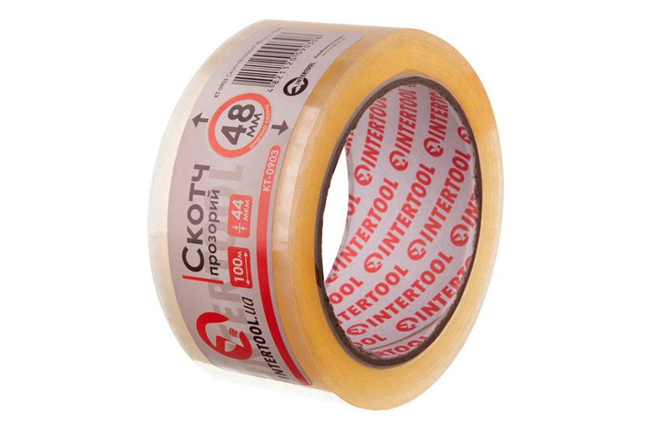 Скотч Intertool - 48 мм х 100 м х 52 мкм, прозрачный