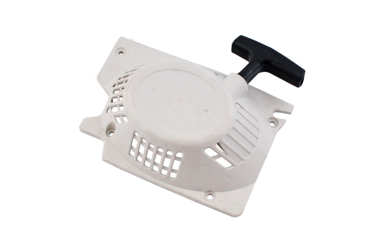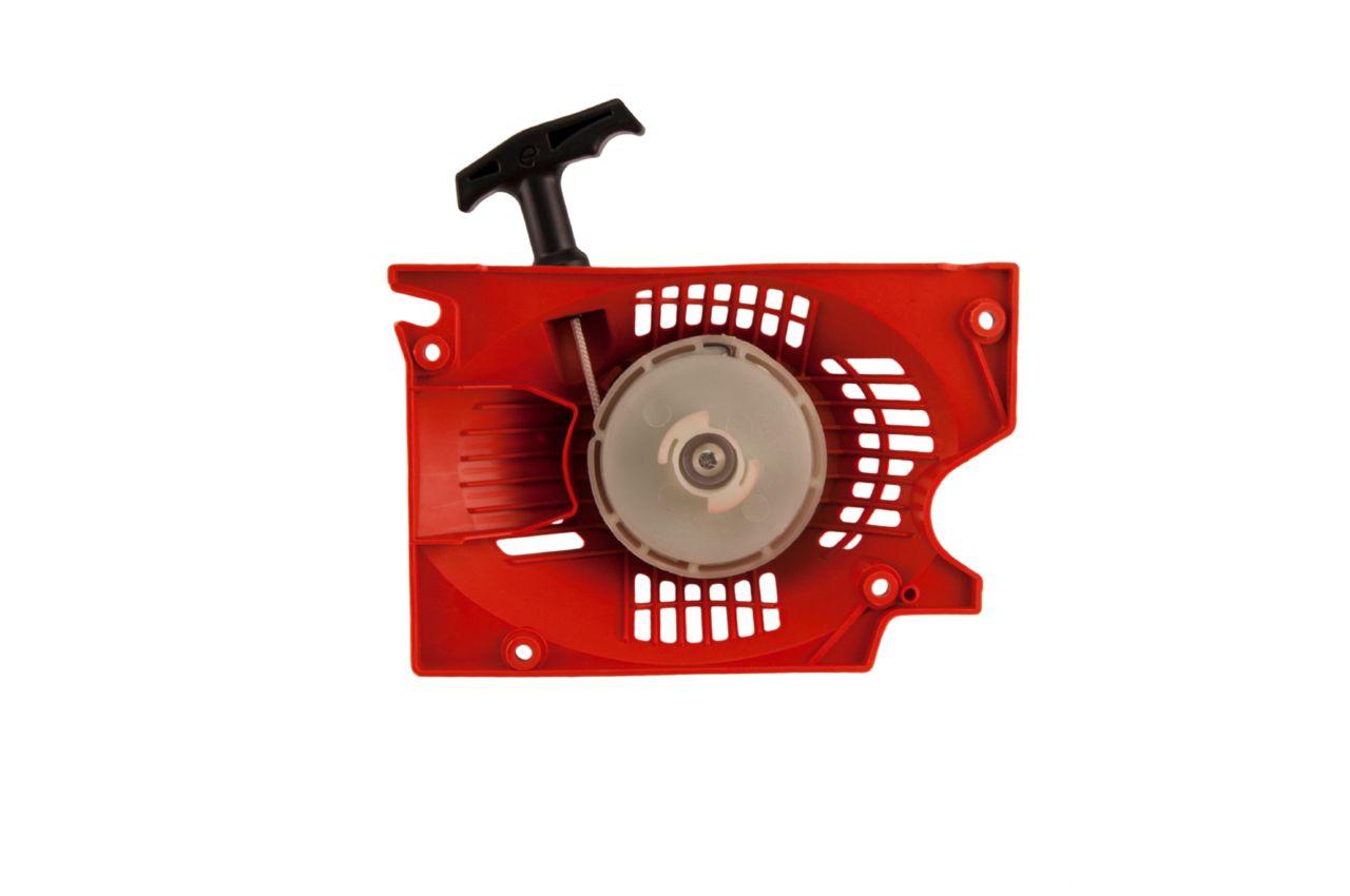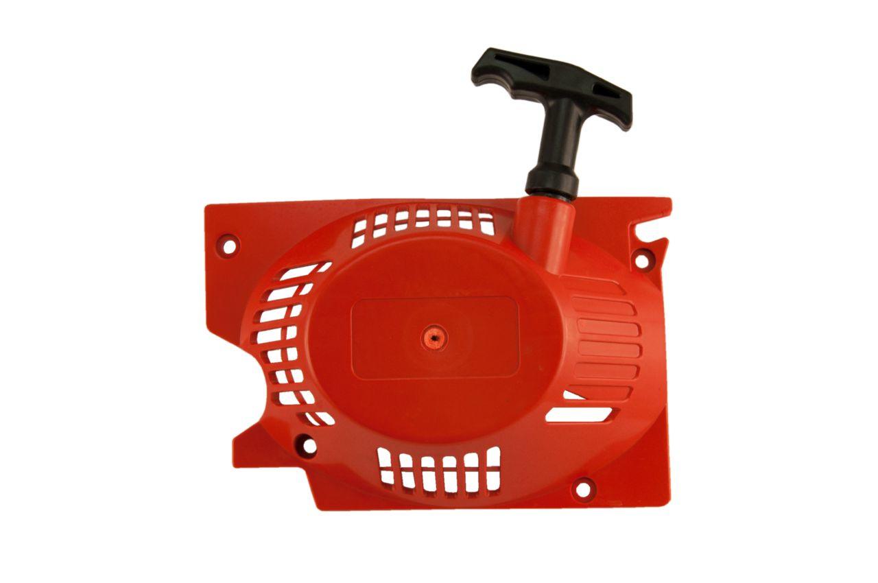 Корпус стартера сделан из пластмассы. Внутри находится шкив стартера на 2 зацепа, пружина стартера (лёгкого старта), вторая пружина обычная, шпагат и ручка стартера.