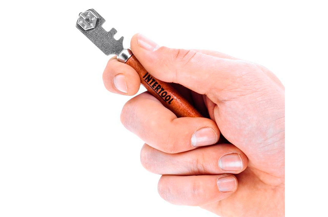 Стеклорез ручной c роликом, изготовленным из высококачественного сверхтвердого сплава вольфрама и кобальта. Ручка выполнена из дерева. Используется для порезки стекла толщиной 1-5 мм. Заточки режущей части достаточно более чем на 350 погонных метра реза. Материал рукоятки: дерево