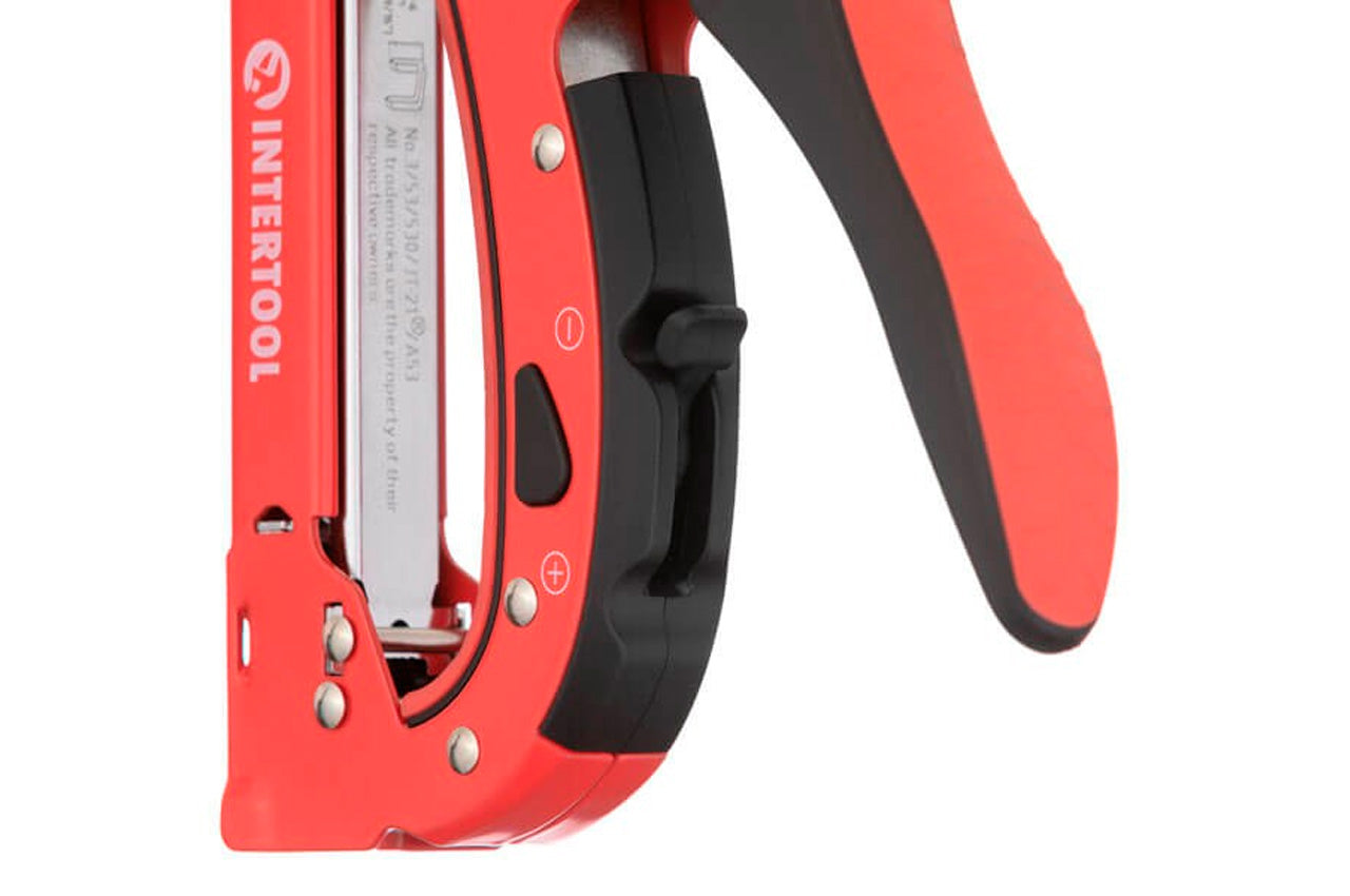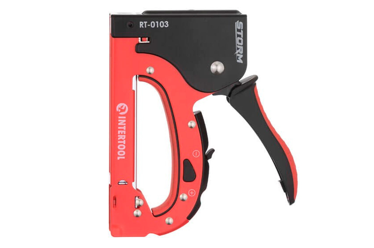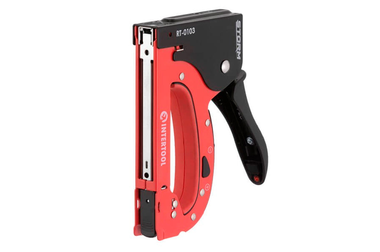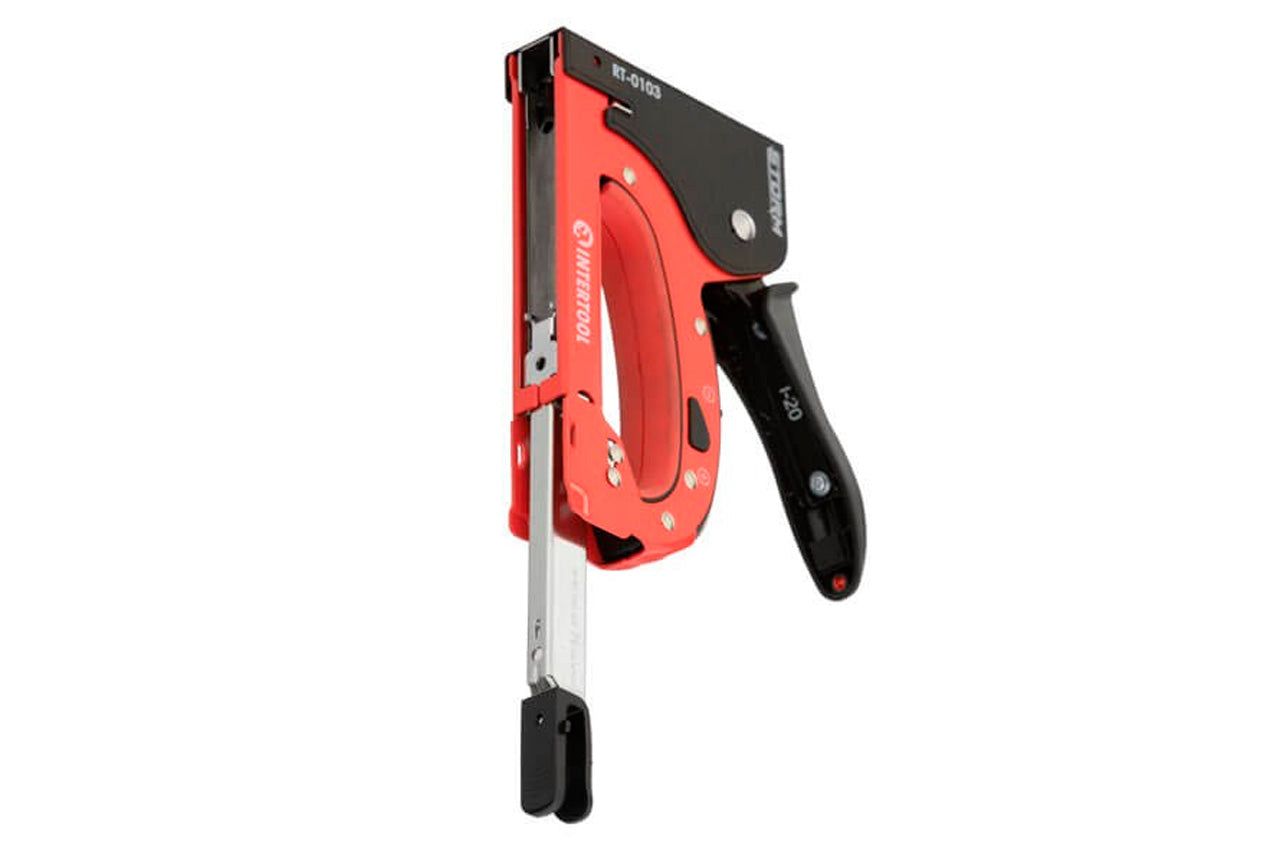 Механический скобозабивной пистолет имеет полностью металлический корпус. Рукоятка степлера покрыта приятной на ощупь дополнительной резиновой вставкой. Степлер может работать со скобами 11,3 * 4-14 мм и сечением 0,7 мм. Высота скобы: 4-14 мм; Ширина скобы: 11.3 мм; Сечение скобы: 0.7 мм; Покрытие рукоятки: резина; Материал корпуса: металл; Срок эксплуатации: не менее 50000 ударов