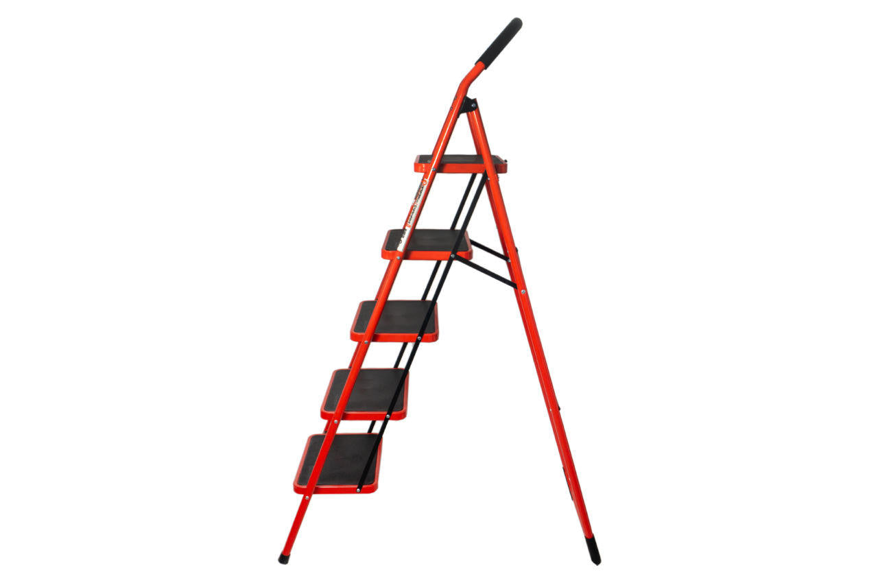 Лестница-стремянка отличается своей многофункциональностью, устойчивостью и прочностью. Широко применяются для выполнения строительных, отделочных и хозяйственных работ: при покраске потолка, стен, поклейке обоев, замене лампочек, сборе урожая с деревьев и т.п. Изготовлена из надежного стального круглого профиля, выдерживает нагрузку до 150 кг. Соответствует европейскому стандарту EN14183. Ступени широкие (38 х 26 см) и надежные, на них вы не боитесь упасть. Они покрыты нескользящими резиновыми накладками, вы стоите устойчиво! Также есть система безопасности для защиты от случайного складывания стремянки во время работы (на последней ступени есть специальный металлический крюк, который фиксирует откидную часть). Ножки оснащены пластиковыми башмаками против скольжения. Стремянка легко складывается и занимает совсем немного места. Со своими габаритами (180х45х2,5 см) поместиться в кладовую, на балкон, за дверью и пр. На стремянку удобно подыматься и переносить ее, благодаря мягкому, большому округлому поручню. Особенности Устойчивая - задняя опора усилена диагоналями жесткости; Стальная конструкция обеспечит стремянке прочность и долговечность; Надежное крепление ступеней. Высота до верхней ступени: 1215 мм; Количество ступеней: 5; Размер ступени: 380*260 мм; Профиль: стальной круглый; Максимальная нагрузка: 150 кг