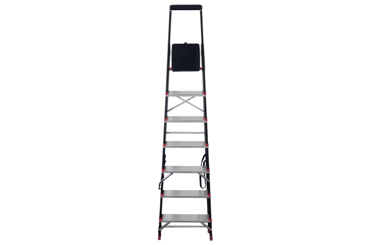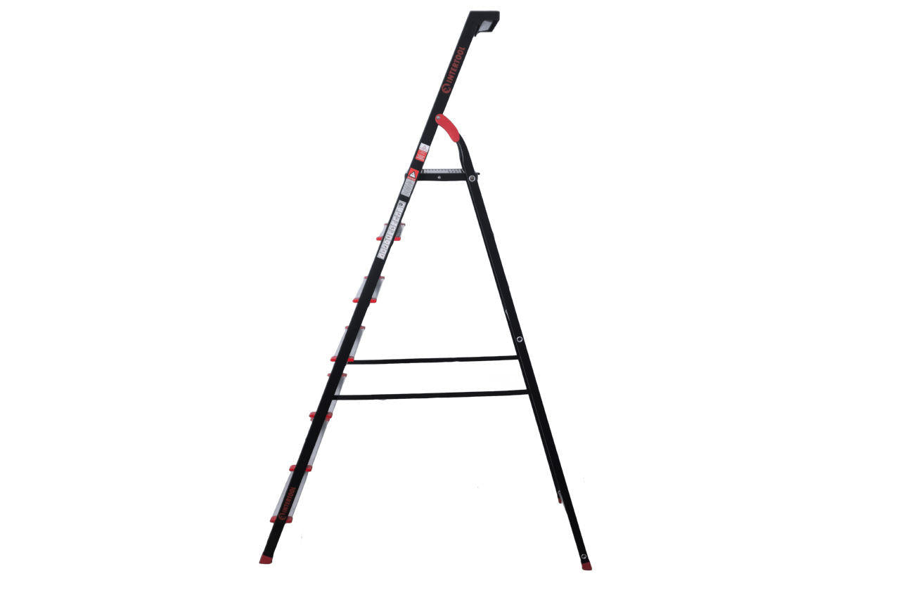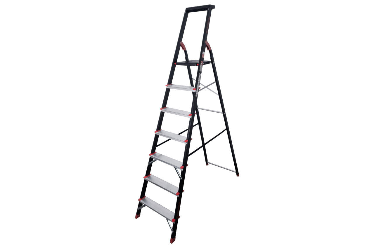 Стремянка со стальным профилем поможет в быту и на производстве. С ее помощью вы легко достанете до самых высоких шкафов, карнизов и окон. Просто необходимая вещь в саду или во время ремонта. Такая стремянка во множество раз надежней, чем табурет. Стальной профиль с безопасными ступенями Стремянка изготовлена из прочного стального профиля с алюминиевыми ступенями. Рифленые ступени не позволят скользить ноге и обеспечивают безопасный подъем, а также удобное положение во время работы. Стремянка соответствует европейскому стандарту EN131 и выдерживает нагрузку до 150 кг. Широкая верхняя ступень-платформа Изготовлена из стального профиля, имеет габариты 250*250 мм для комфортной работы на высоте. Позволяет безопасно находится на самой верхней точке стремянки. Лоток для инвентаря Поручни безопасности оснащены лотком для инвентаря для размещения негабаритного инструмента. Теперь у вас все под рукой и больше не нужно просить кого-то подавать вам отвертки, плоскогубцы или дрель. Противоскользящие опорные наконечники Прочно сцепляются с любыми поверхностями пола и не повреждают напольные покрытия. Стремянка стоит устойчиво и вы не боитесь упасть. Надежные защищенные соединения ступеней и профиля, поручни, стяжные профили и ремни делают конструкцию лестницы устойчивой и безопасной. Профиль: стальной прямоугольный; Количество ступеней: 7 ед.; Высота до платформы: 1500 мм; Максимальная нагрузка: 150 кг; Габариты в рабочем положении: 504*1283*2003 мм; Габариты в сложенном виде: 504х110х2200 мм