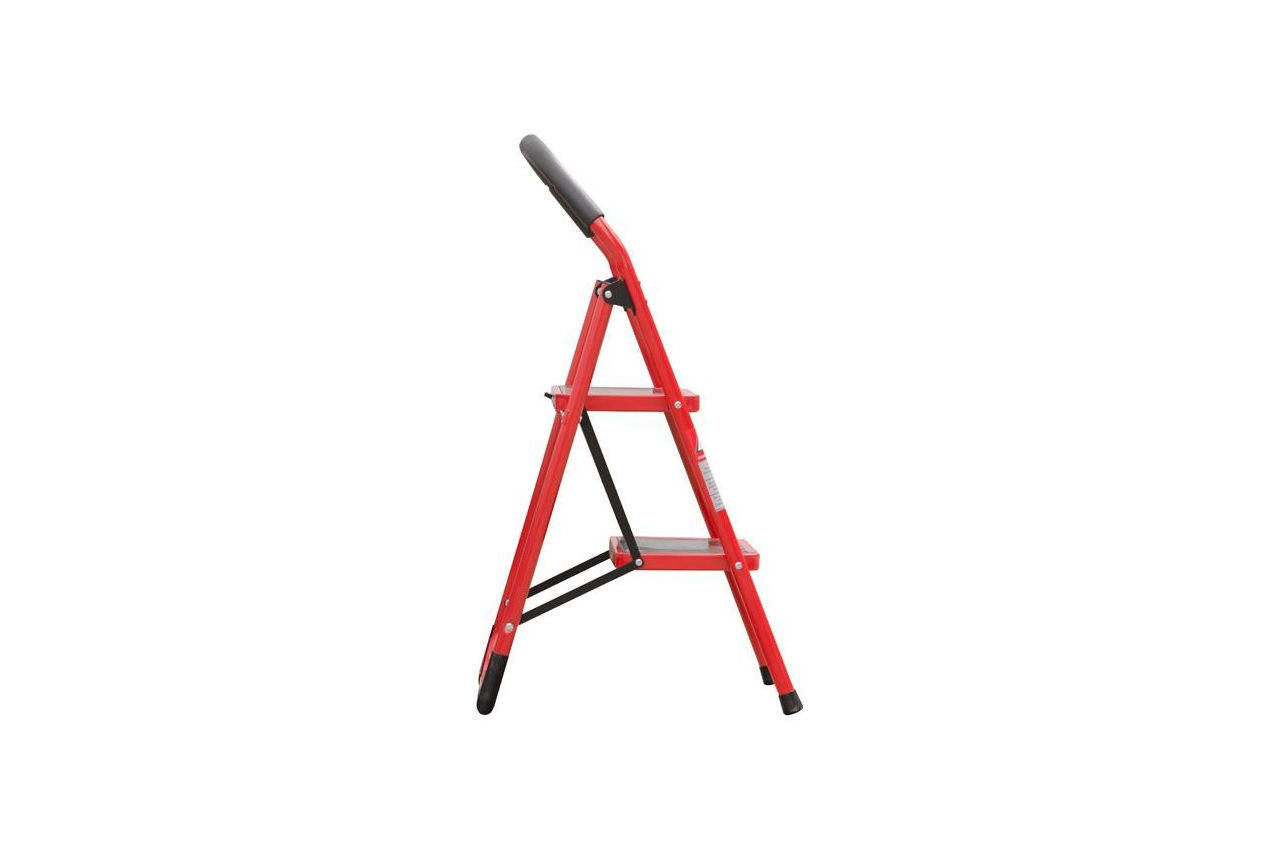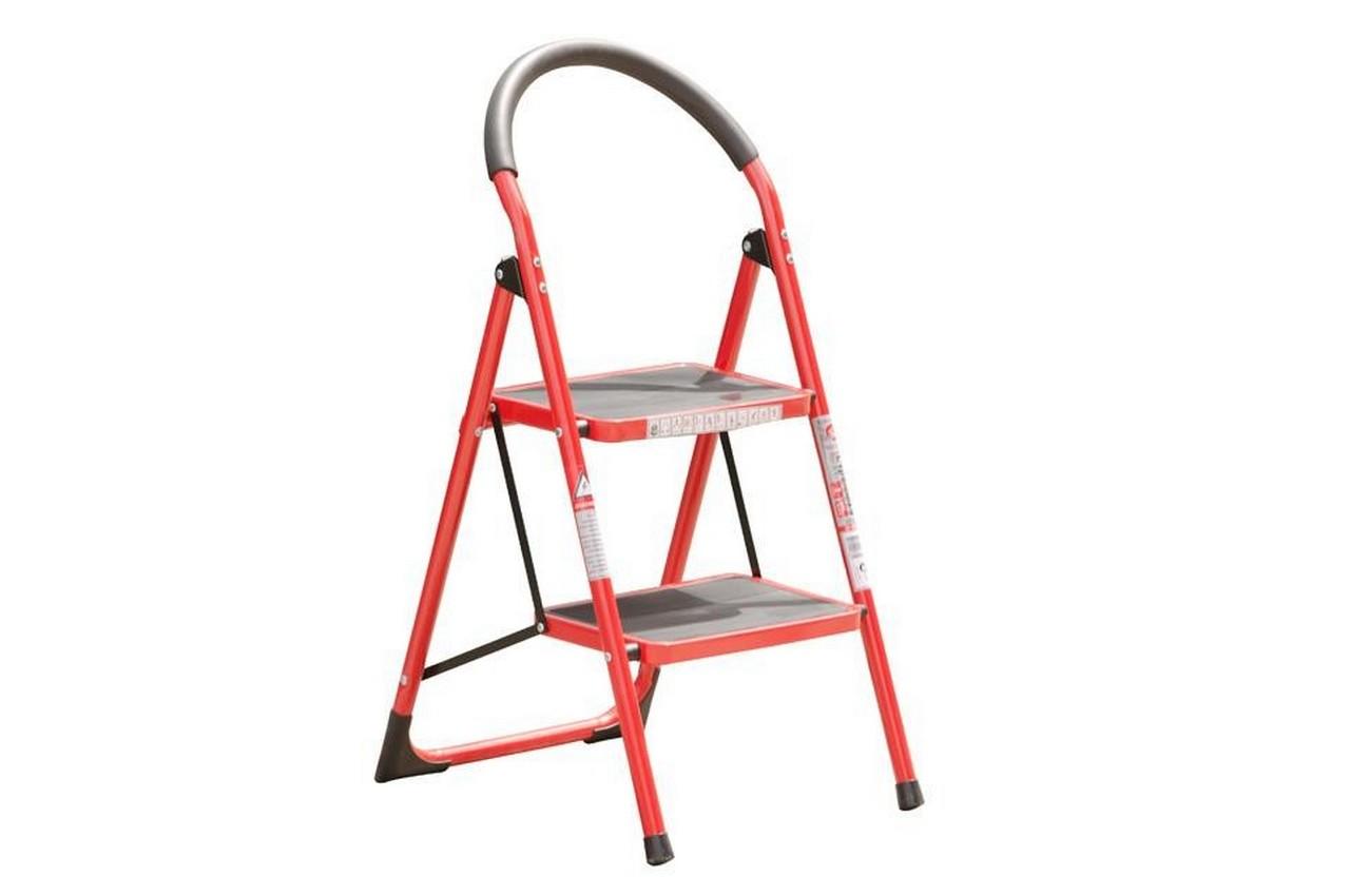 Лестница-стремянка отличается своей многофункциональностью, устойчивостью и прочностью. Широко применяются для выполнения строительных, отделочных и хозяйственных работ: при покраске потолка, стен, поклейке обоев, замене лампочек, сборе урожая с деревьев и т.п. Изготовлена из надежного стального круглого профиля, выдерживает нагрузку до 150 кг. Соответствует европейскому стандарту EN14183. Ступени широкие (35 х 22 см) и надежные, на них Вы не боитесь упасть. Они покрыты нескользящими резиновыми накладками, Вы стоите устойчиво! Также есть система безопасности для защиты от случайного складывания стремянки во время работы (на последней ступени есть специальный металлический крюк, который фиксирует откидную часть). Ножки оснащены пластиковыми башмаками против скольжения. Стремянка легко складывается и занимает совсем немного места. Со своими габаритами (96 х 43 х 7 см) поместиться в кладовую, на балкон, за дверью и даже под кроватью! Удобно подыматься и переносить, благодаря мягкому, большому округлому поручню. Особенности Устойчивая - задняя опора усилена диагоналями жесткости; Стальная конструкция обеспечит стремянке прочность и долговечность; Надежное крепление ступеней. Высота до верхней ступени: 490 мм; Ширина лестницы: 430 мм; Профиль: стальной круглый; Количество ступеней: 2; Размер ступени: 350 х 220 мм; Максимальная нагрузка: 150 кг