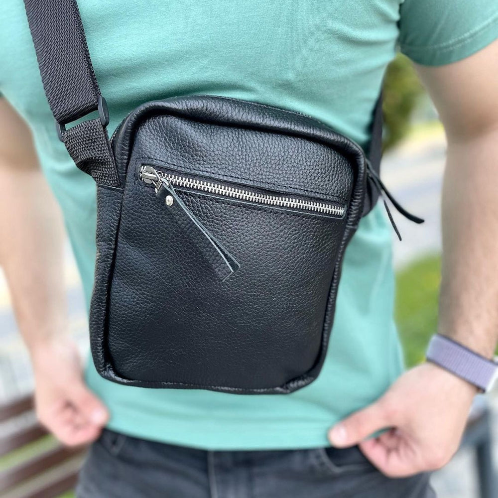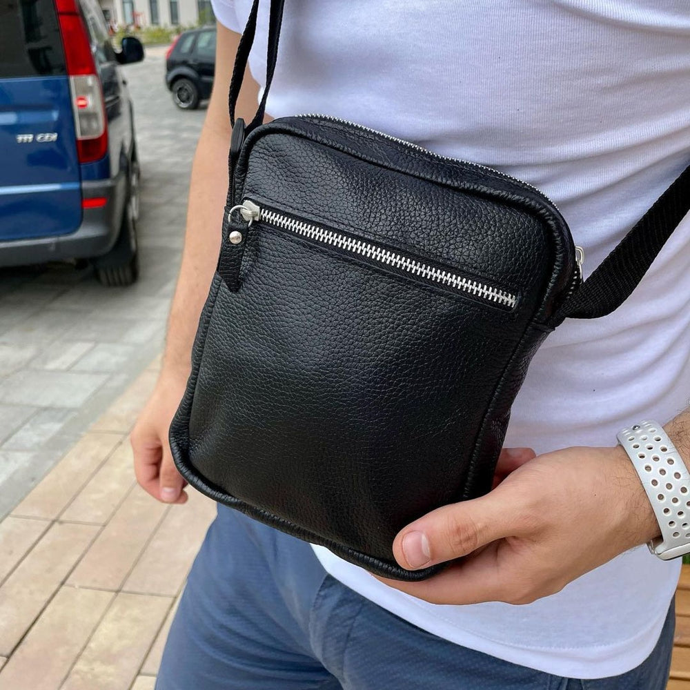 Сумка из натуральной кожи мужская, мессенджер кожаный чёрный, качество, мужская сумка через плече