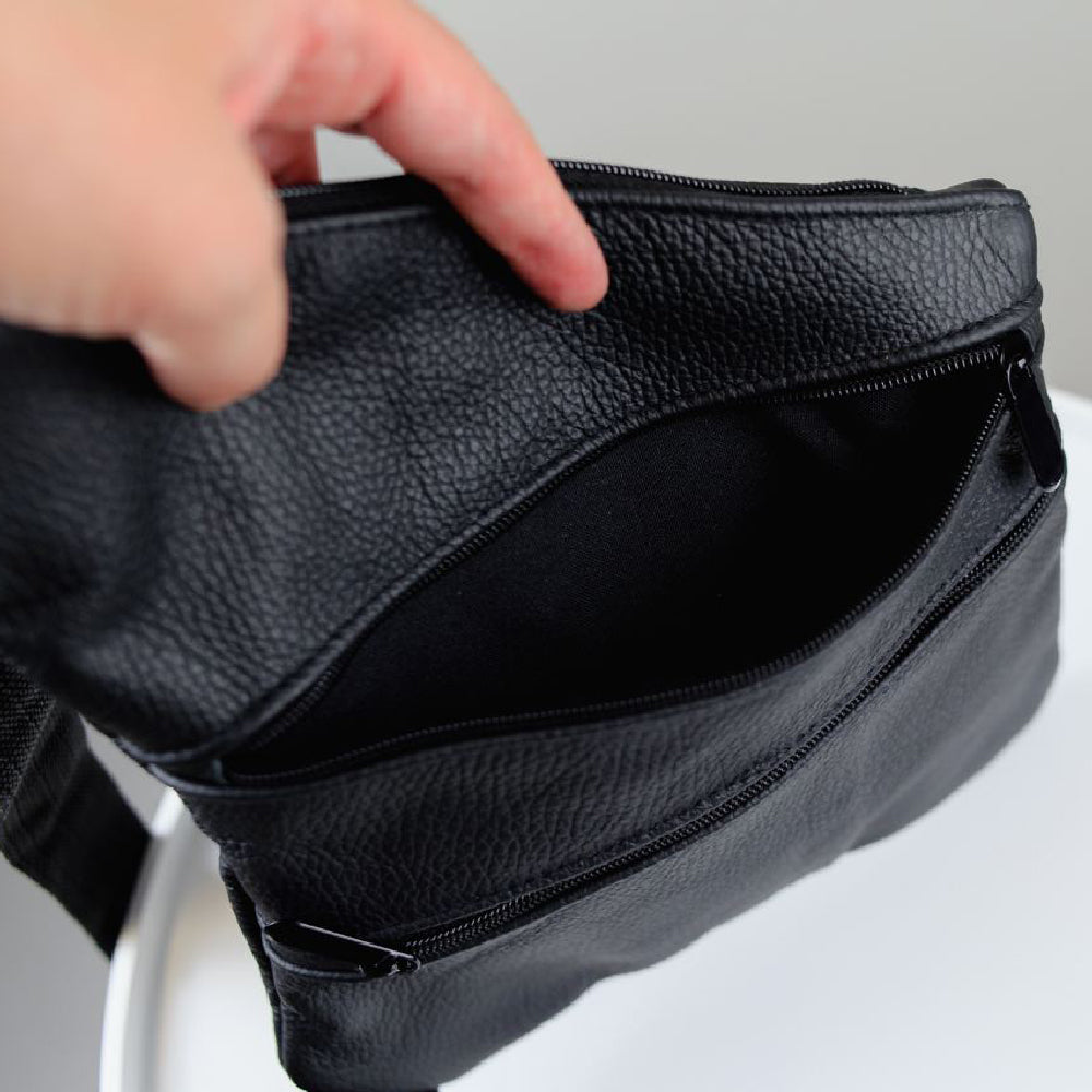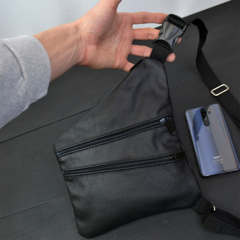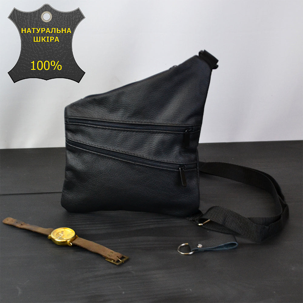 Сумка мужская на 3 карманах, из натуральной кожи, слинг нагрудный черный, мужская сумка кроссбоди