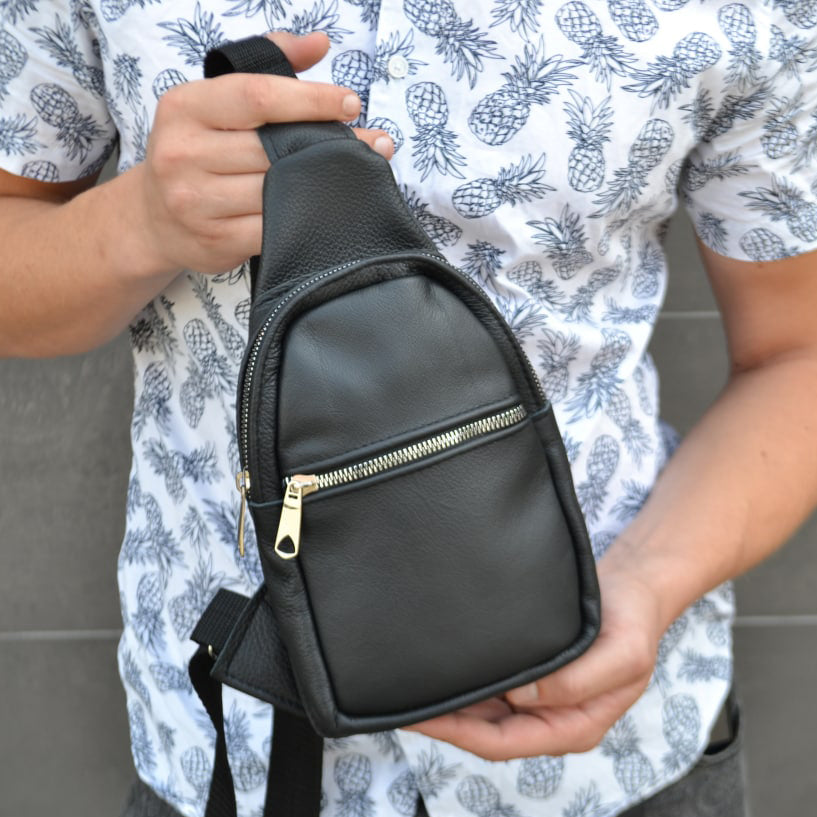Сумка слинг из натуральной кожи. Кожаная слинг сумка. Серебрянные замки. Модель: 57649