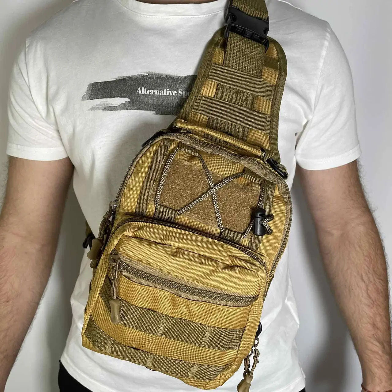 Мужская тактическая многофункциональная нагрудная сумка-слинг через плечо с системой MOLLE из кордуры!
