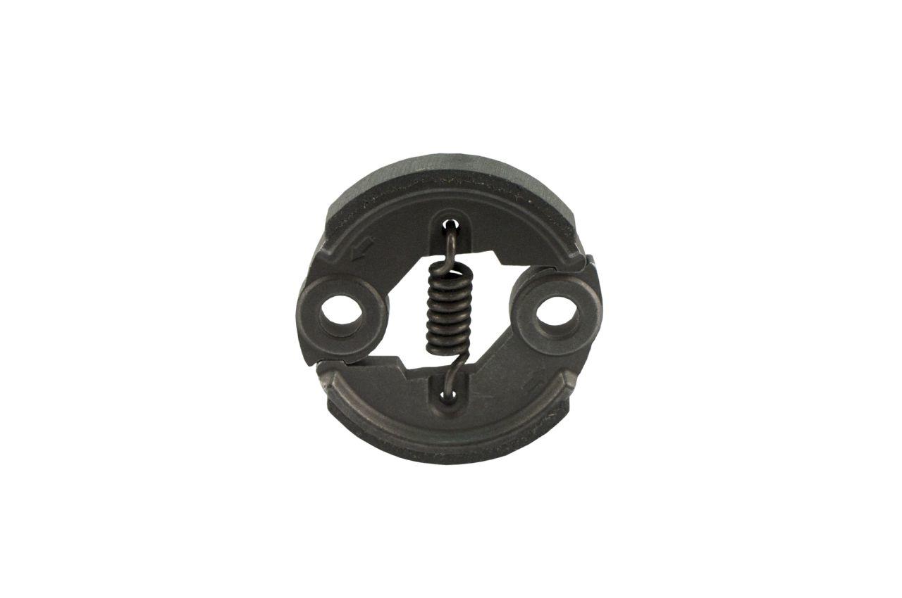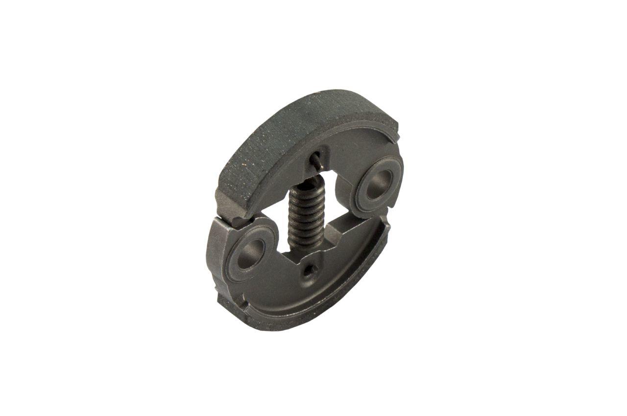 Муфта сцепления бензотриммера из металла. Диаметр сцепления 74х76 мм, толщина 14 мм, диаметр отверстия под болты крепления 10 мм, расстояние по центрам отверстий 52 мм, пружина 8 витков ( диаметр 11 мм).