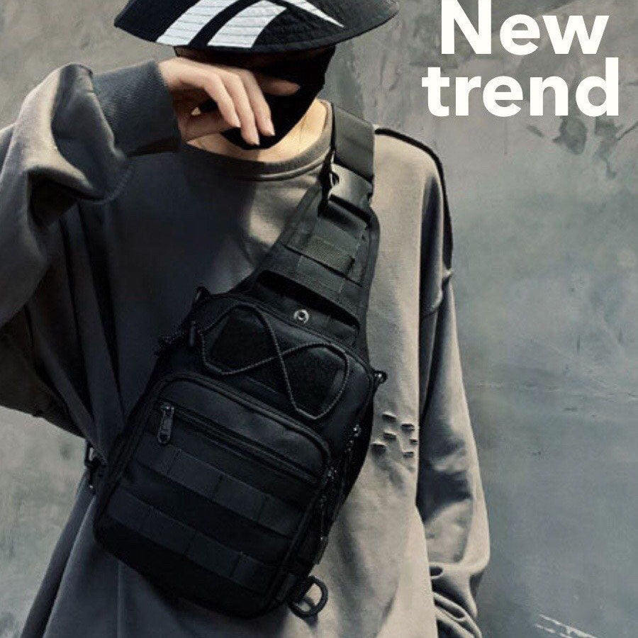 Мужская тактическая многофункциональная нагрудная сумка-слинг через плечо с системой MOLLE из кордуры!