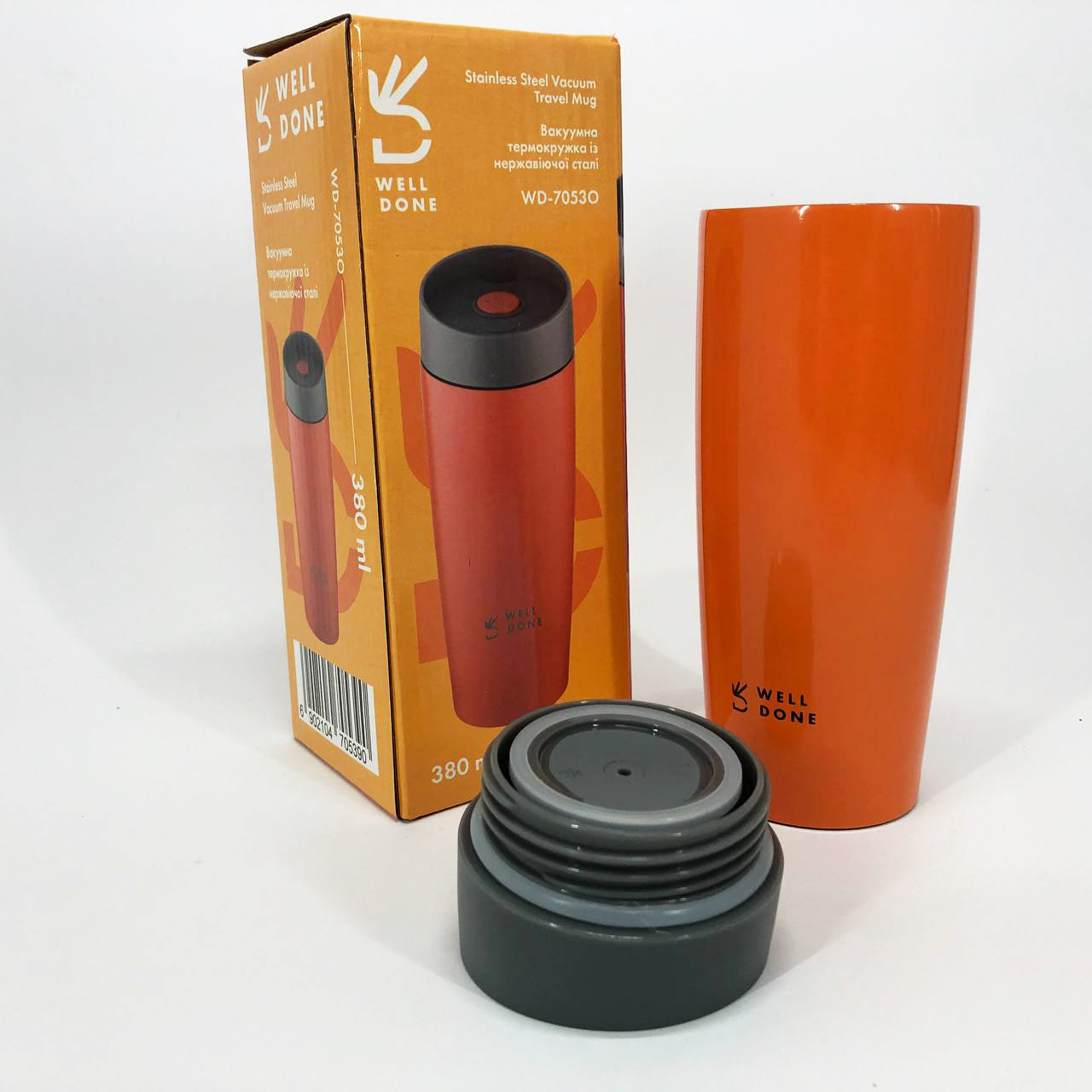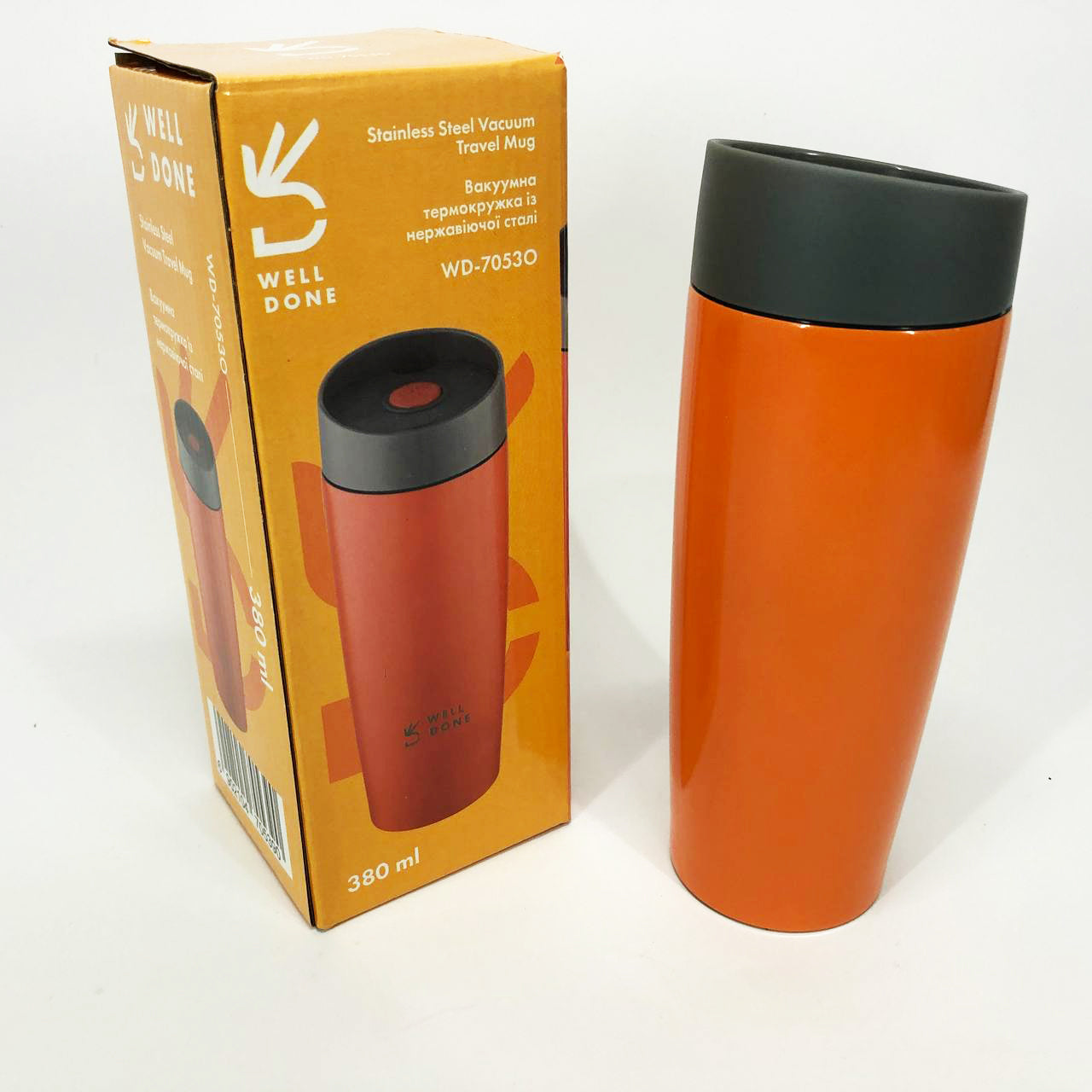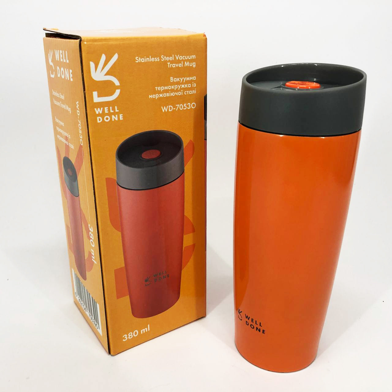 Термокружка Well Done вакуумная 380 мл оранжевый изготовлена из высококачественной нержавеющей стали.