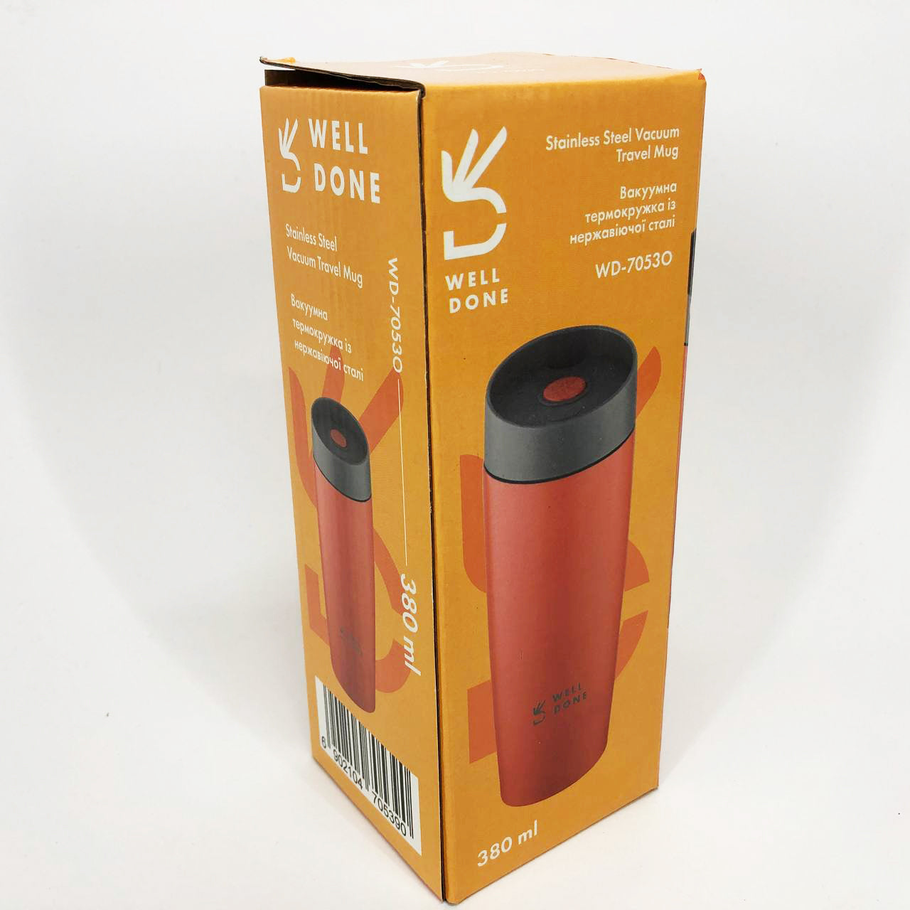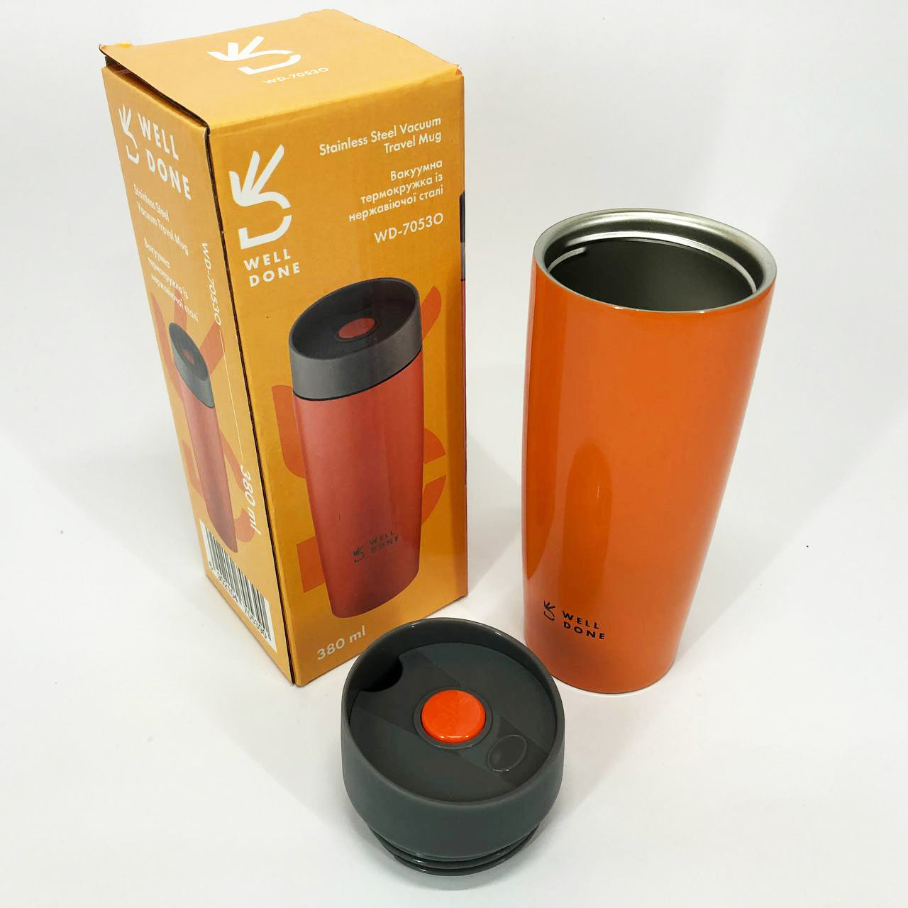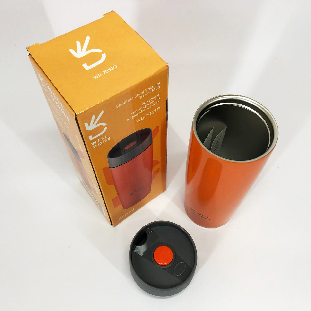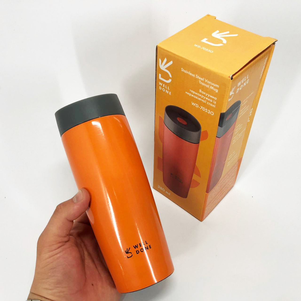Термокружка Well Done вакуумная 380 мл оранжевый изготовлена из высококачественной нержавеющей стали.