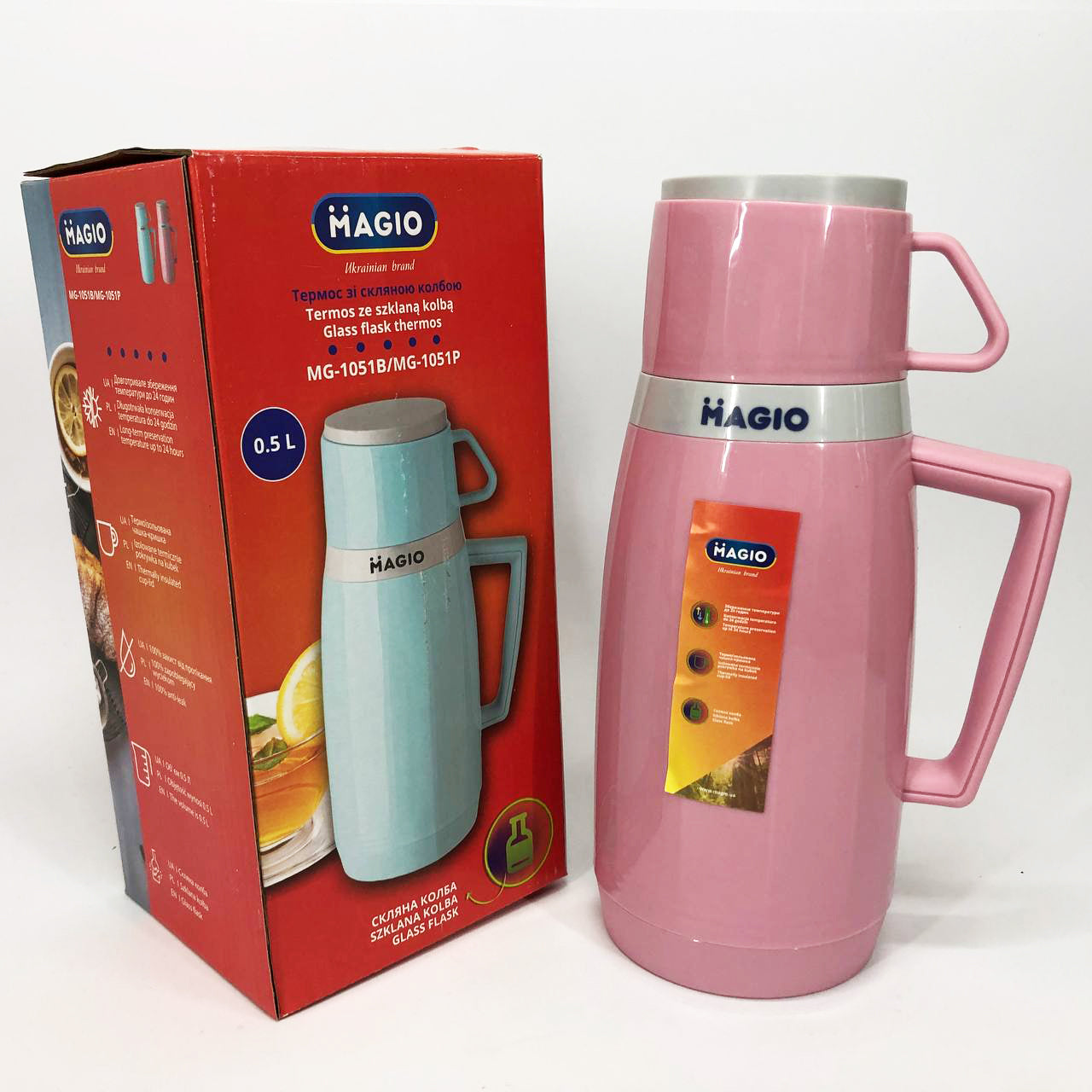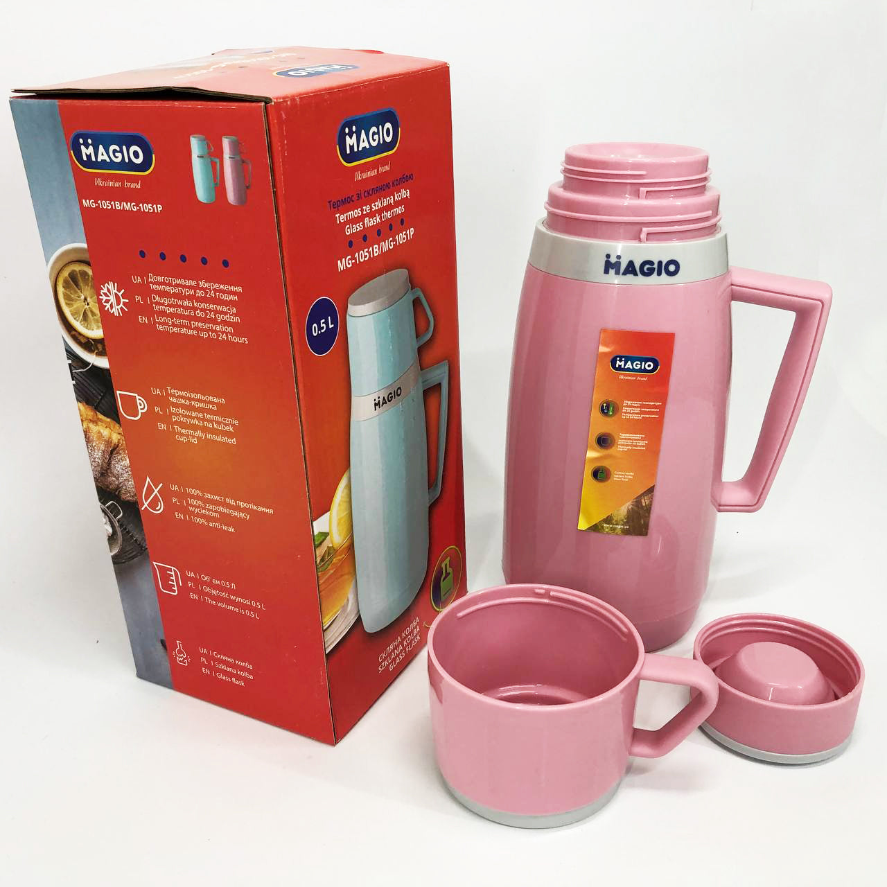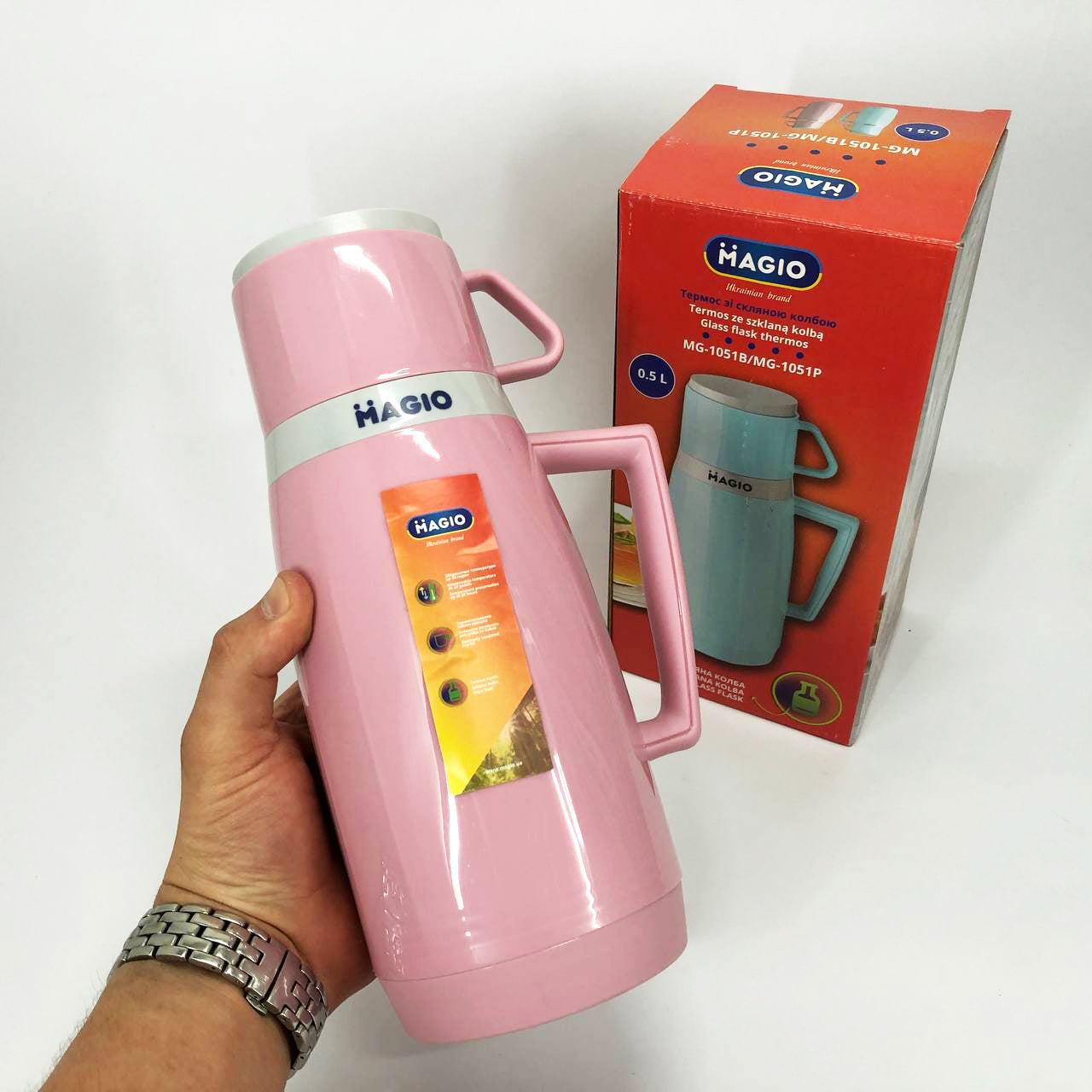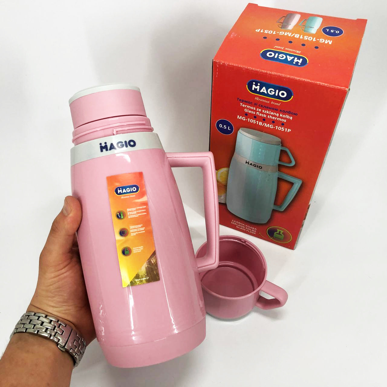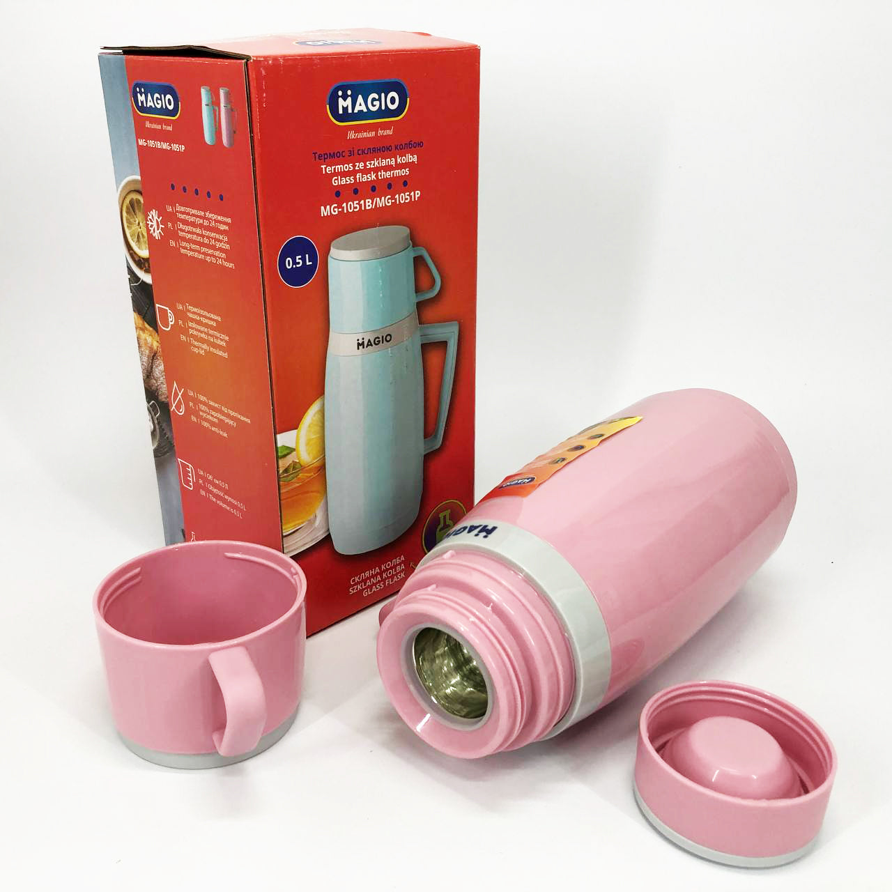 Термос Magio MG-1051P со стеклянной колбой, Термос для питьевой воды, термос для дома. Цвет: розовый