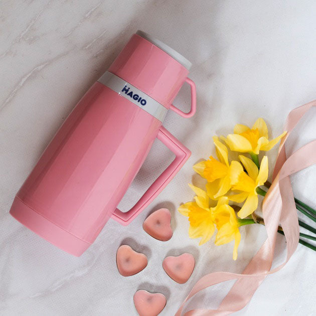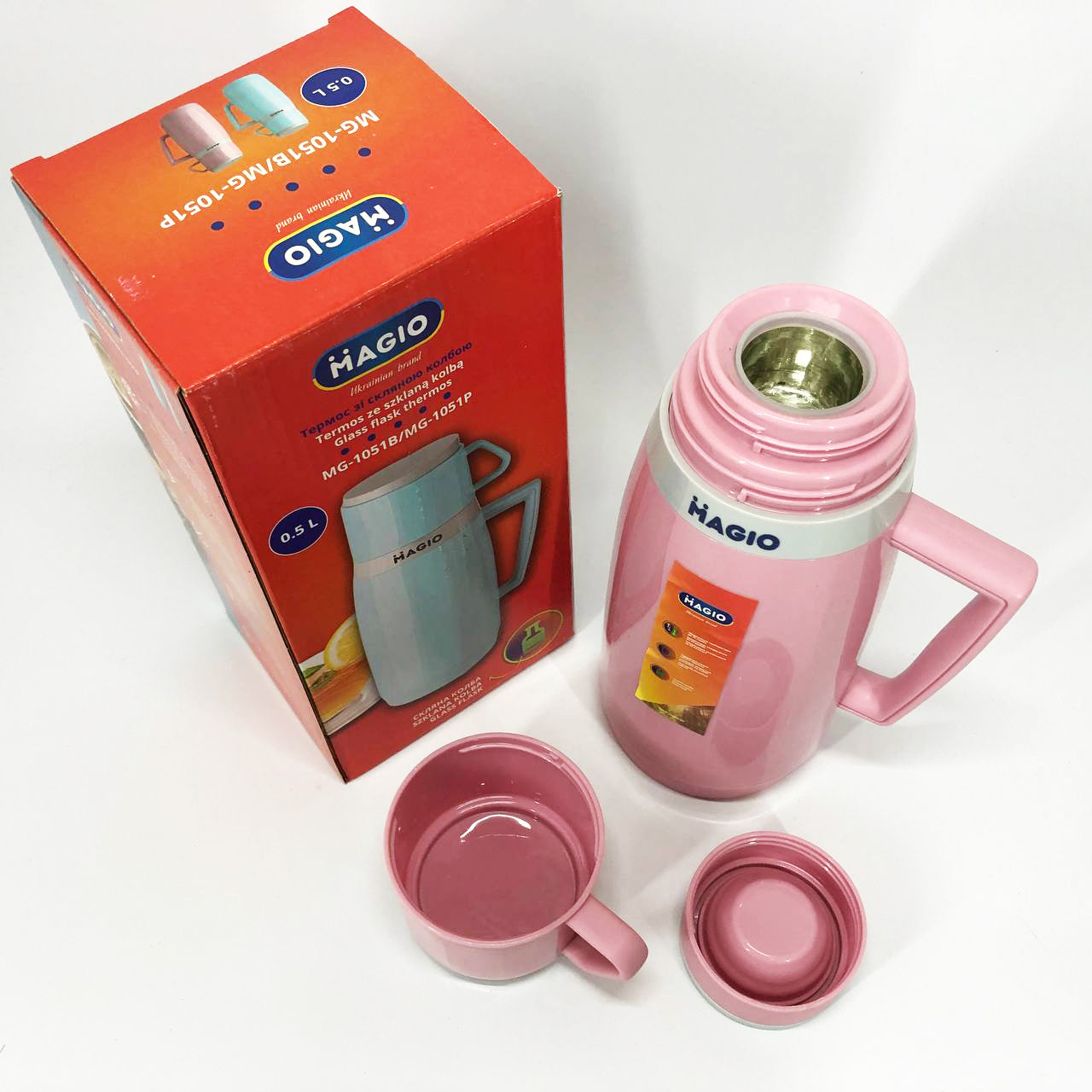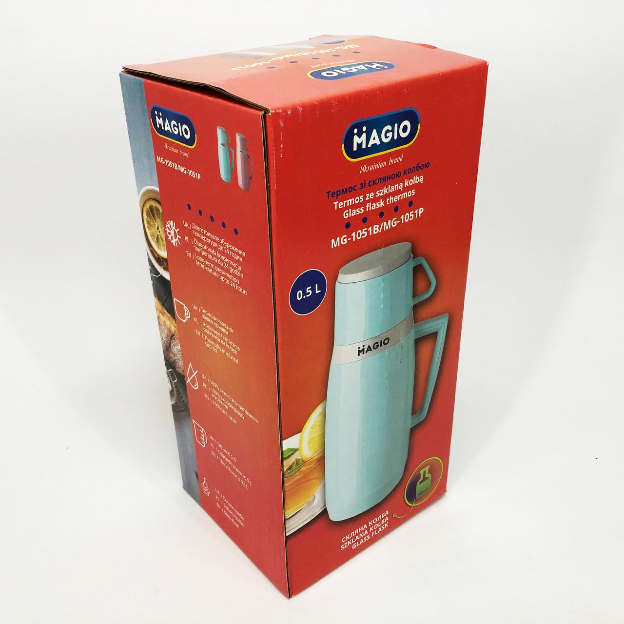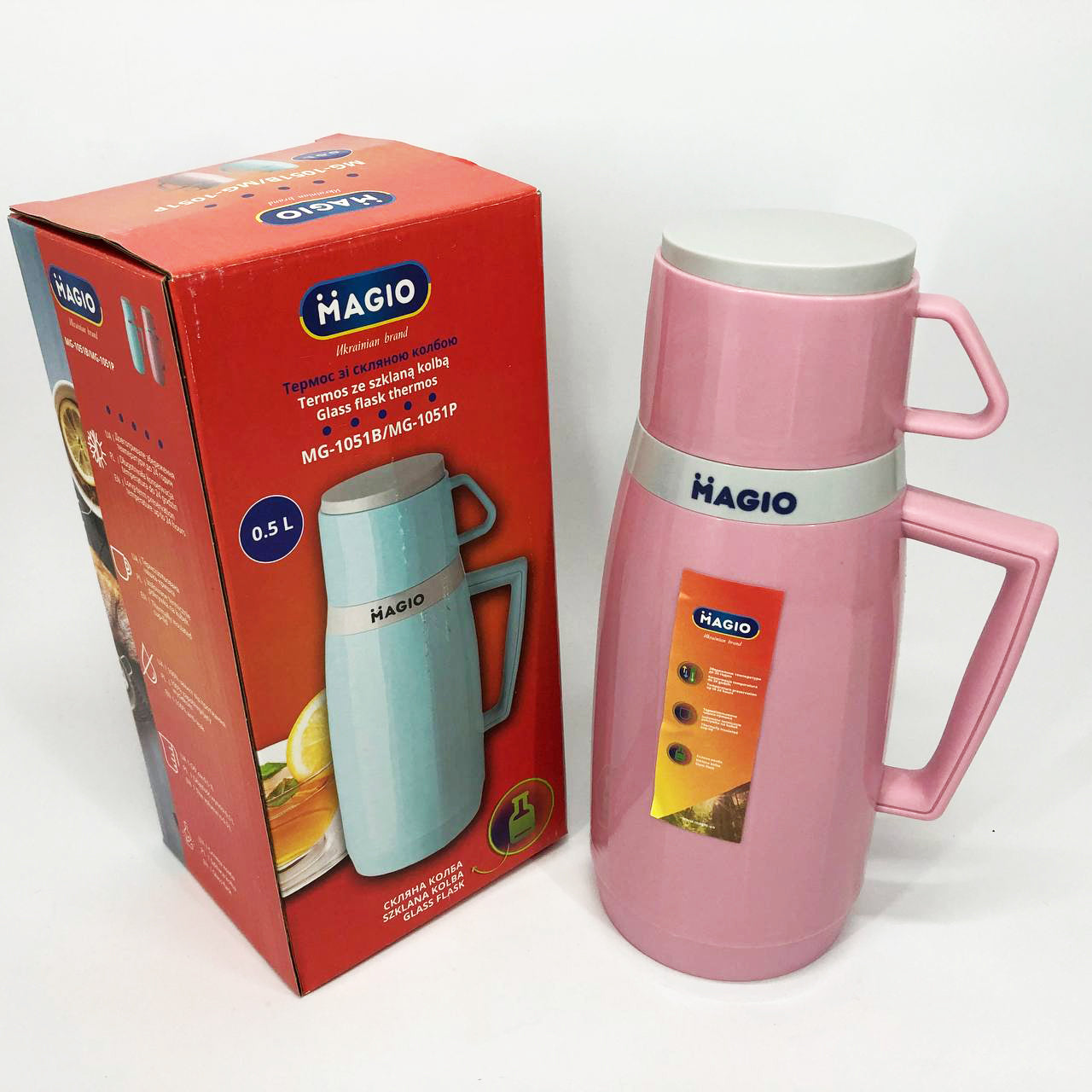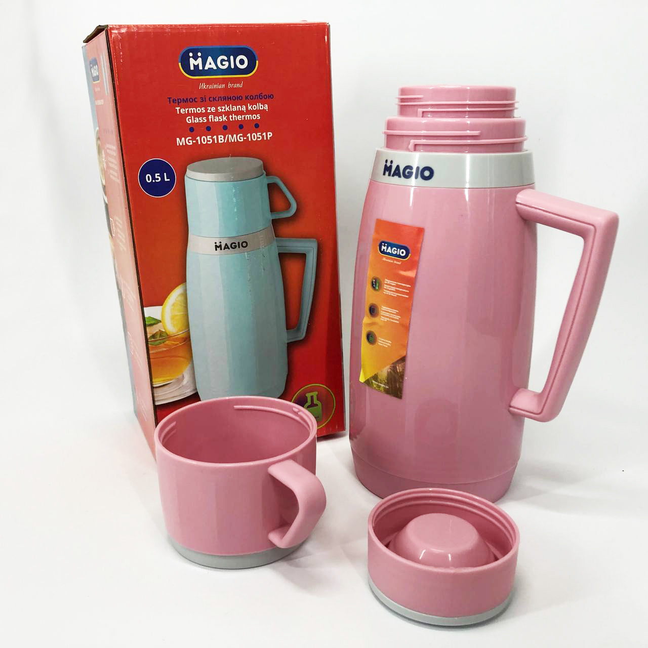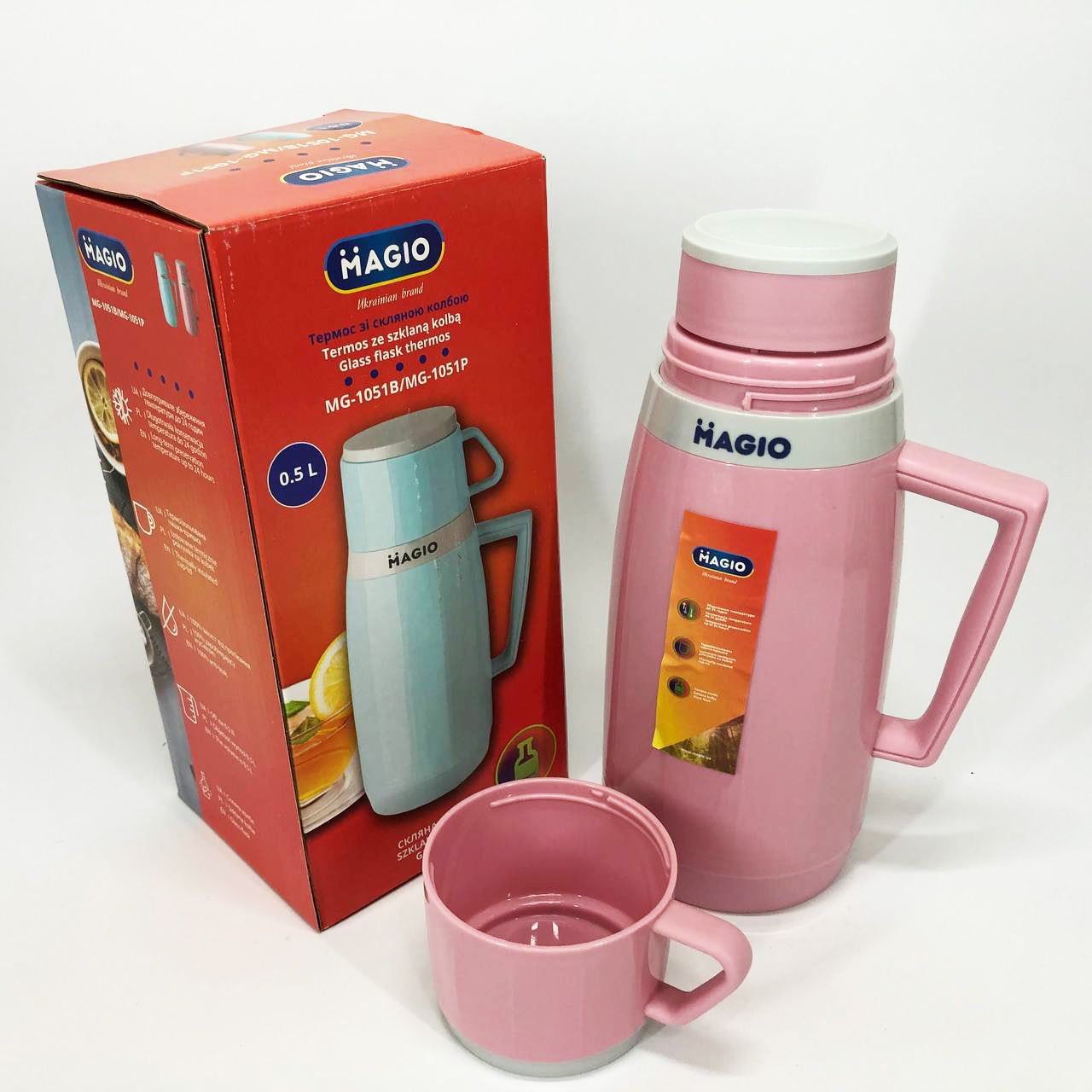 Термос Magio MG-1051P со стеклянной колбой, Термос для питьевой воды, термос для дома. Цвет: розовый