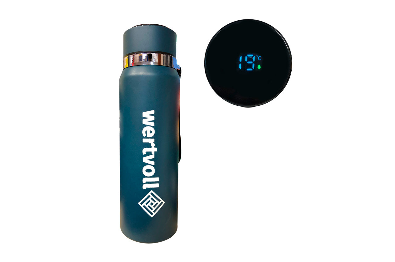 Термос "DREAM" 800 мл от WERTVOLL в синем цвете со встроенным цифровым датчиком температуры – это современный, удобный и стильный аксессуар для сохранения любимых напитков при любой температуре. Благодаря своим свойствам он станет незаменимым помощником как в повседневной жизни, так и во время путешествий.