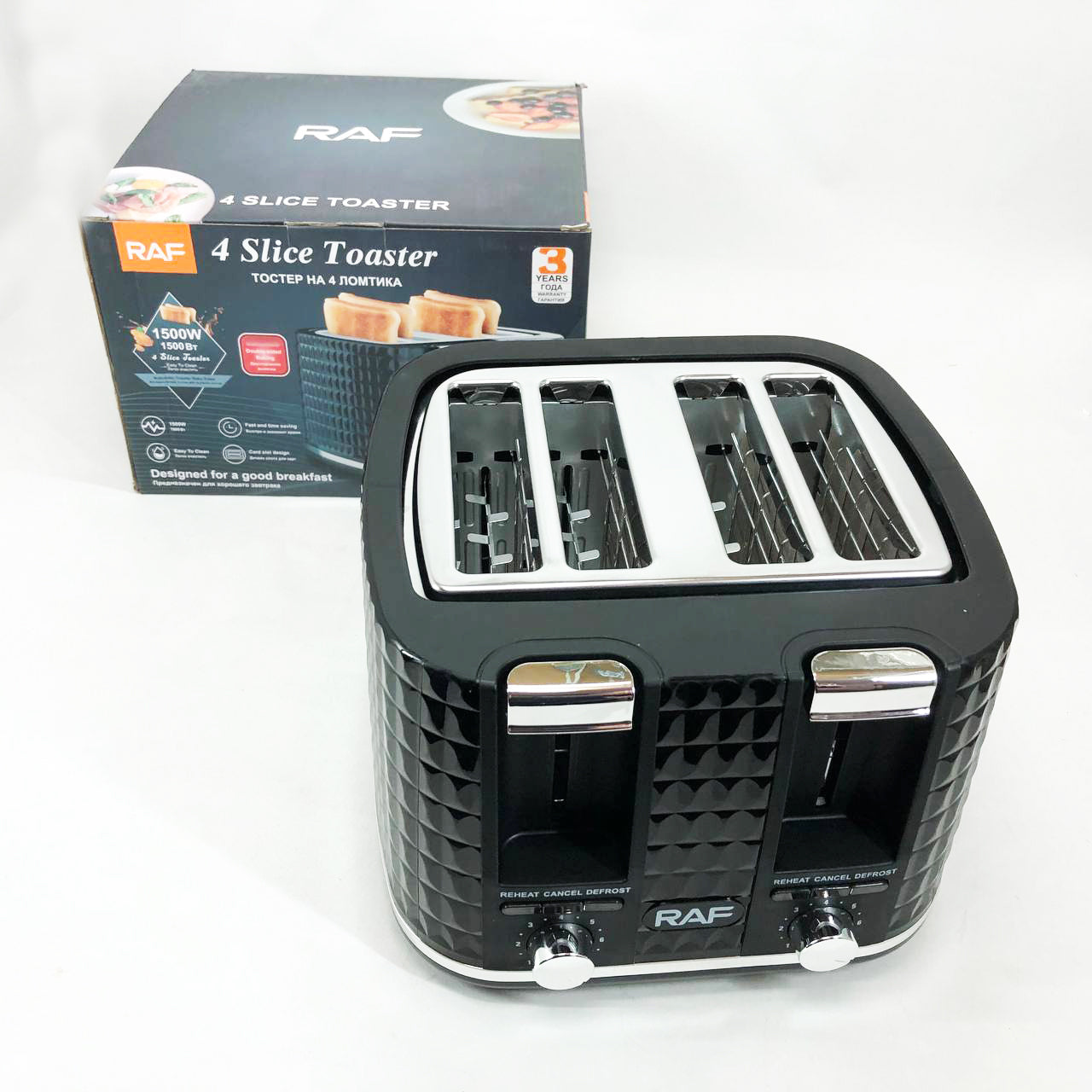 Тостер RAF R.503, 1500 Вт, 4 тоста, 6 уровней поджаривания, функции размораживания и подогрева