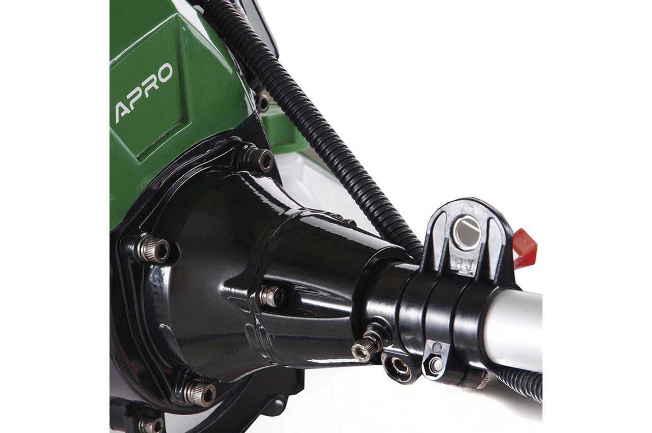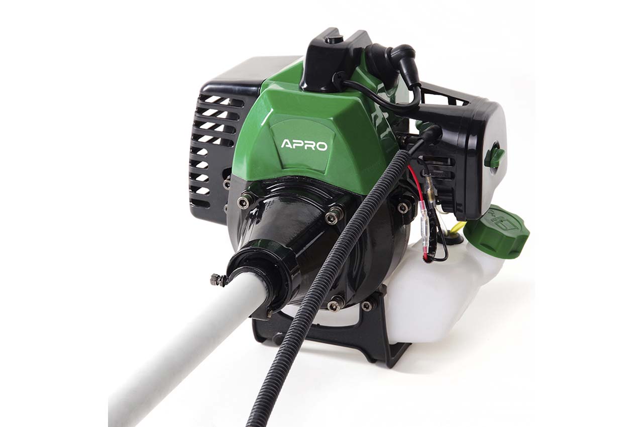 Мощность бензинового триммера APRO достигает 1150 Вт. Это позволяет разгонять ножи до 7000 об/мин и потреблять очень мало топливной смеси. К тому же объем двигателя 32,5 см. куб., что гарантирует небольшие затраты на бензин.