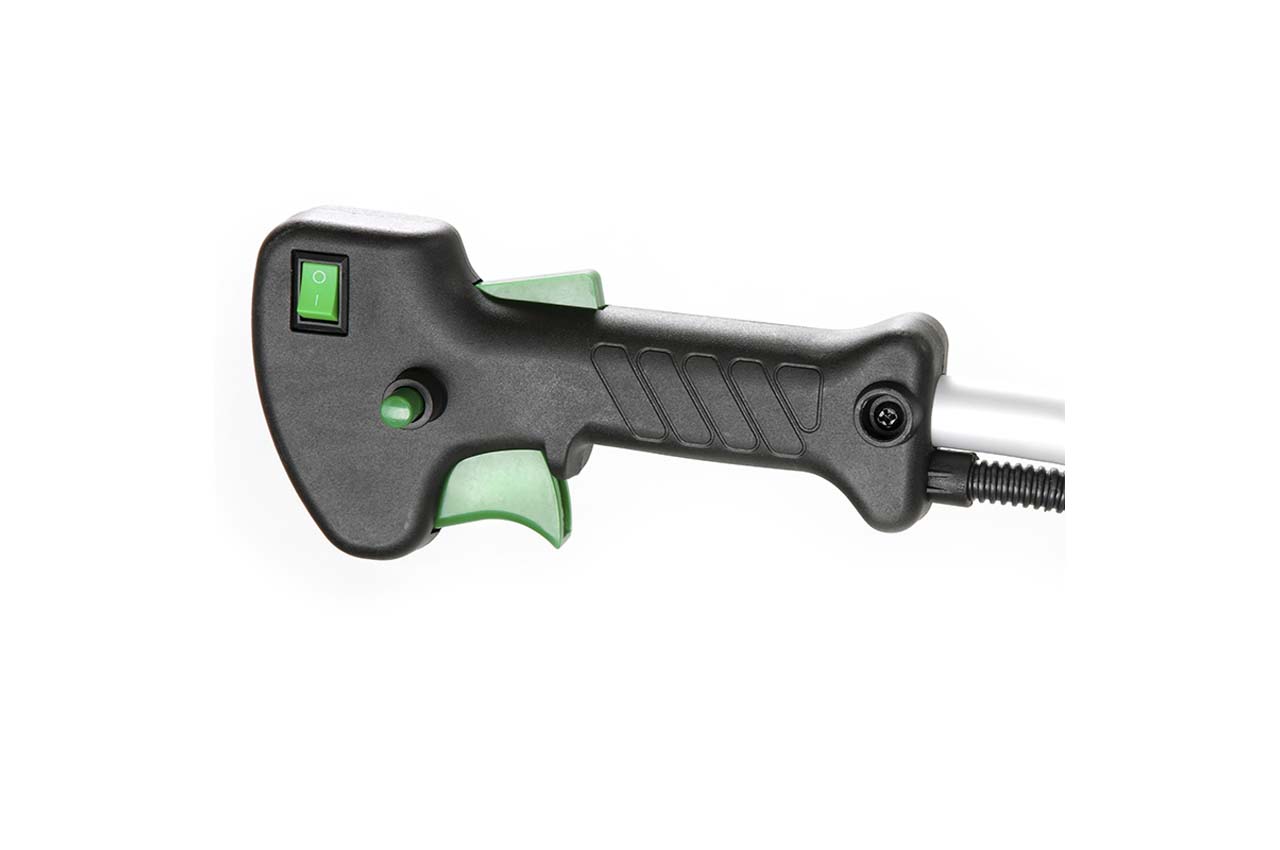 Триммер оснащен длинной трубой, на которой можно прикрепить ручки в любом месте. Это позволит подобрать оптимальный вариант под свой рост. А для того, чтобы нагрузка на руки пользователя была минимальной, есть наплечный ремень.