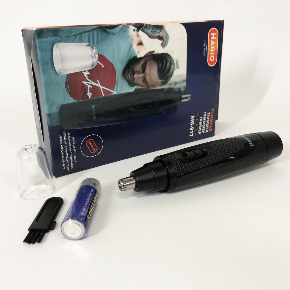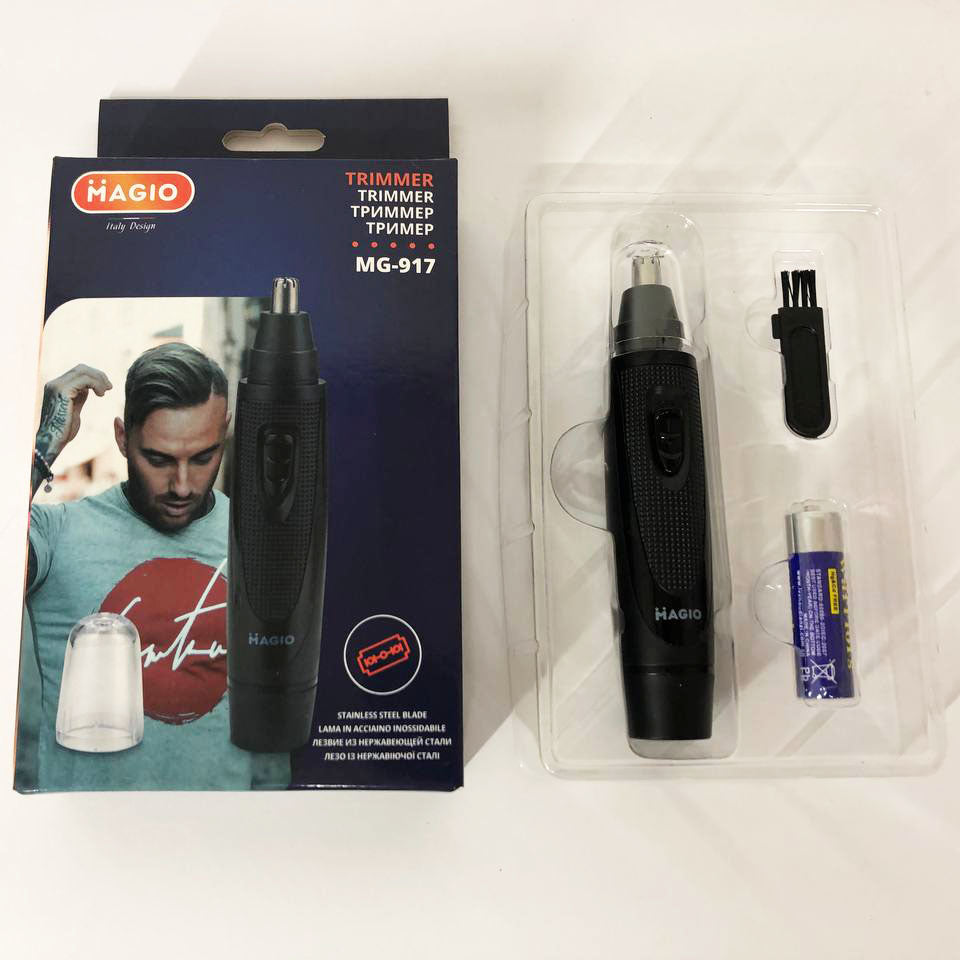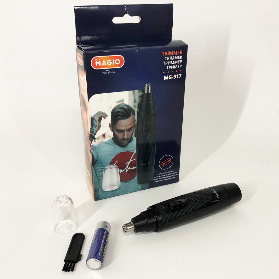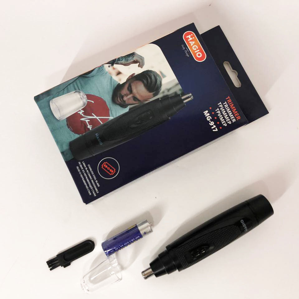 Благодаря триммеру MG-917 вы совершенно безболезненно и безопасно сможете удалить волосы в носу и ушах. Триммер обтекаемой формы, имеет вращающуюся головку и узкий носик. Лезвие выполнено из нержавеющей стали. Это важная деталь любого триммера, от которой зависит как безопасность удаления волос из ушей и носа, так и комфорт. Триммер удобный, хорошо сидит в руке. Благодаря комфортной ручке он не скользит, что приводит вероятность травмирования практически к нулю. Работает прибор от одной пальчиковой батарейки. Если понадобится сменить батарейку, то это легко сделать, провернув корпус, и открыв его. Лезвие после использования можно чистить с помощью щеточки, которая идет в комплекте. Хорошо продумано, так как лезвие остается чистым. Прибор компактный и много места не занимает.