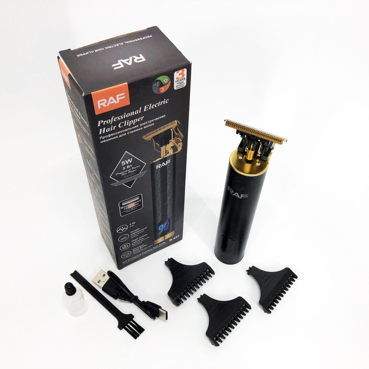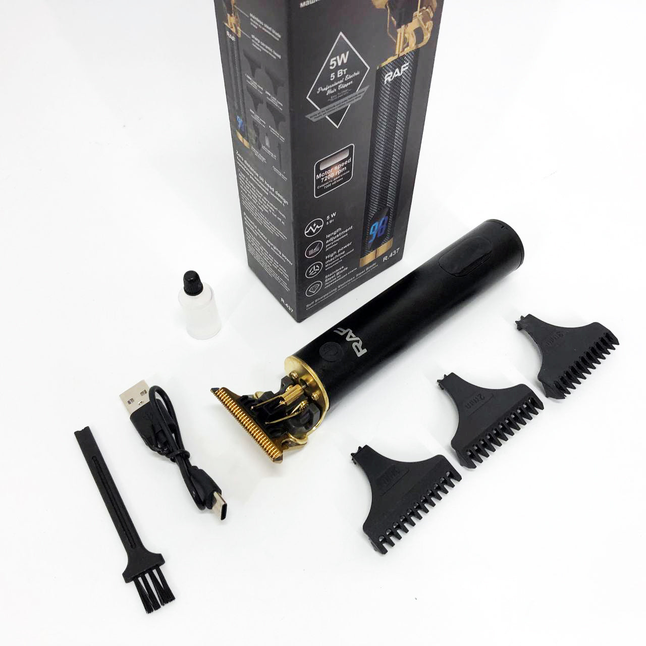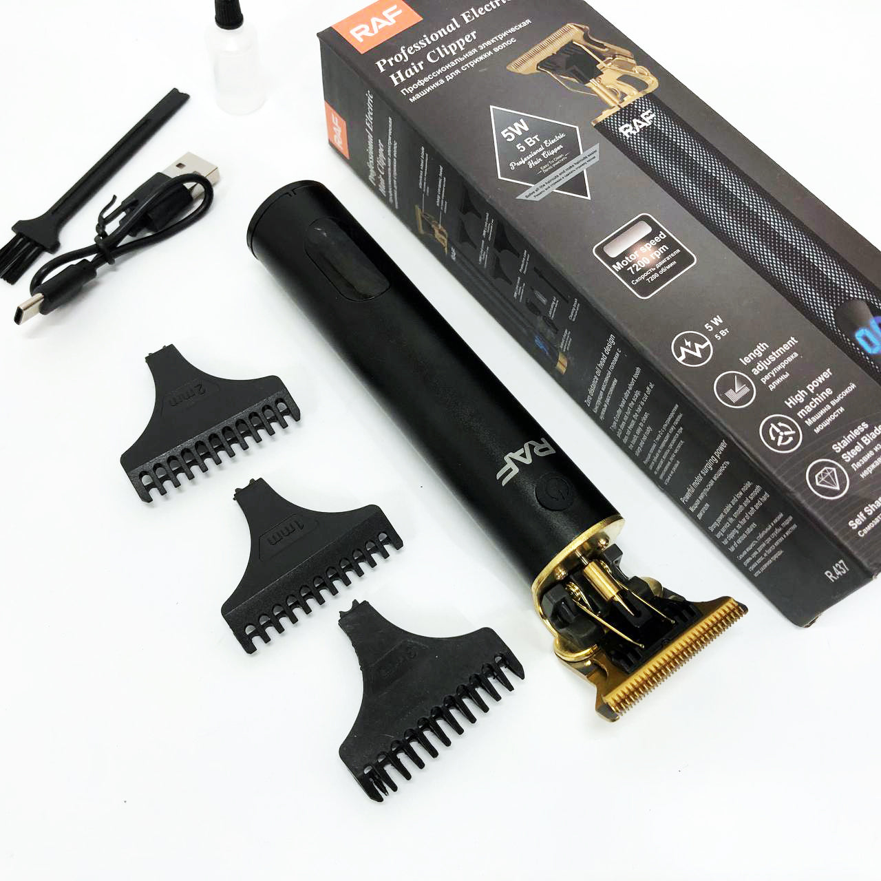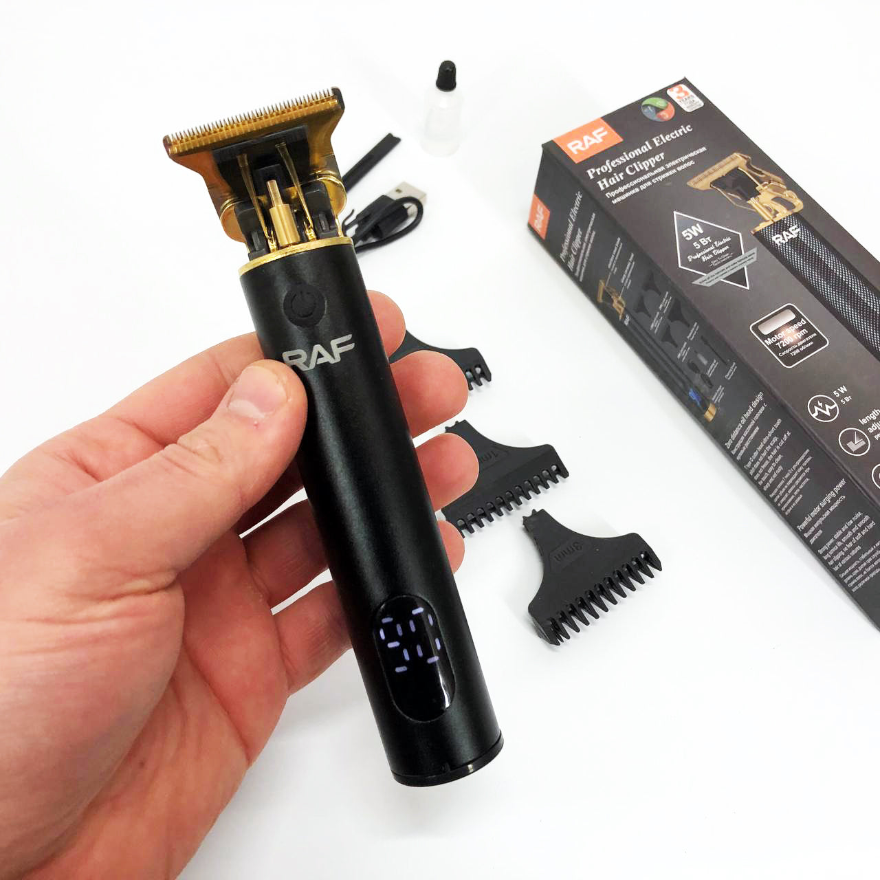 Машинка для стрижки волос и бороды с насадками Raf мужской триммер окантовочная машинка с зарядкой от USB