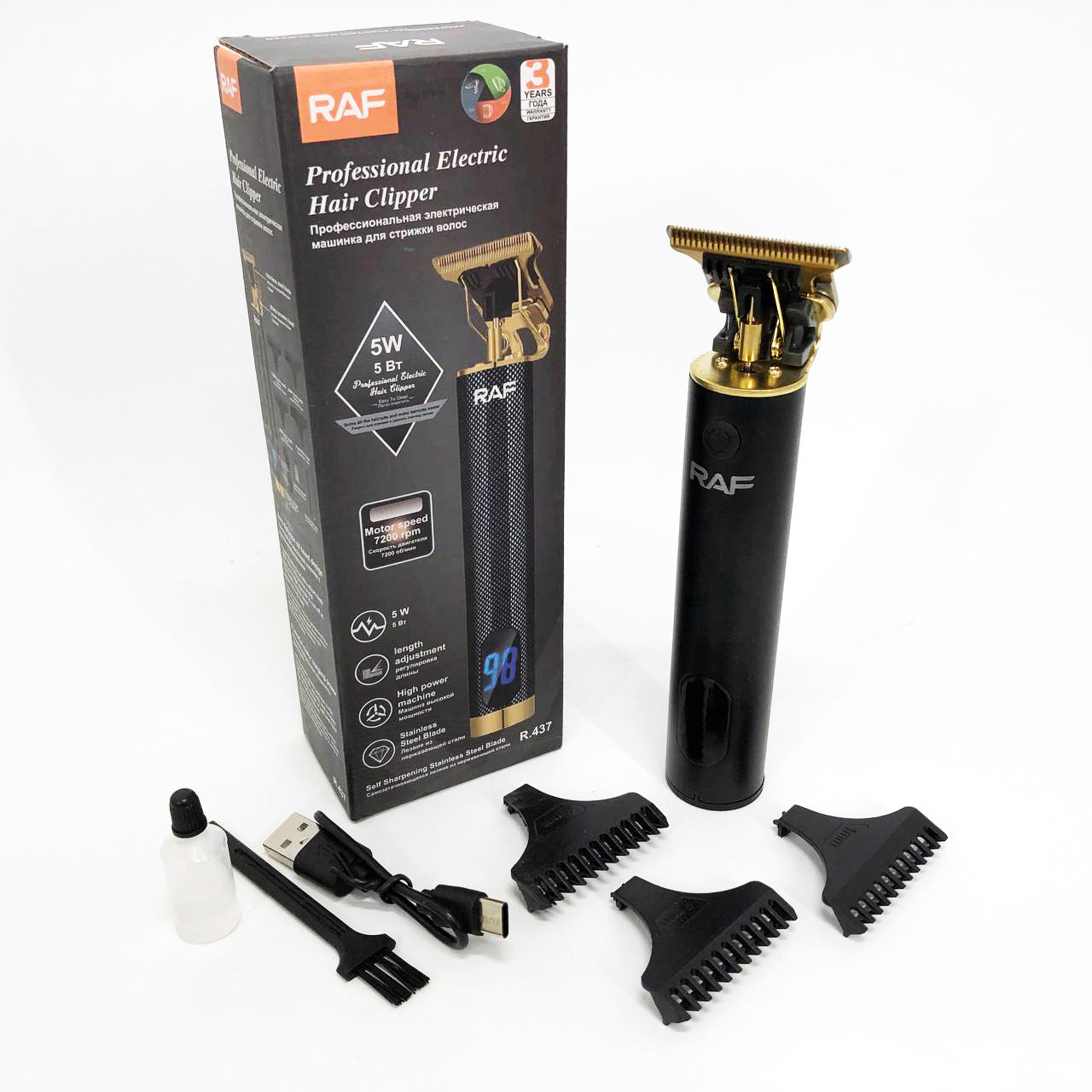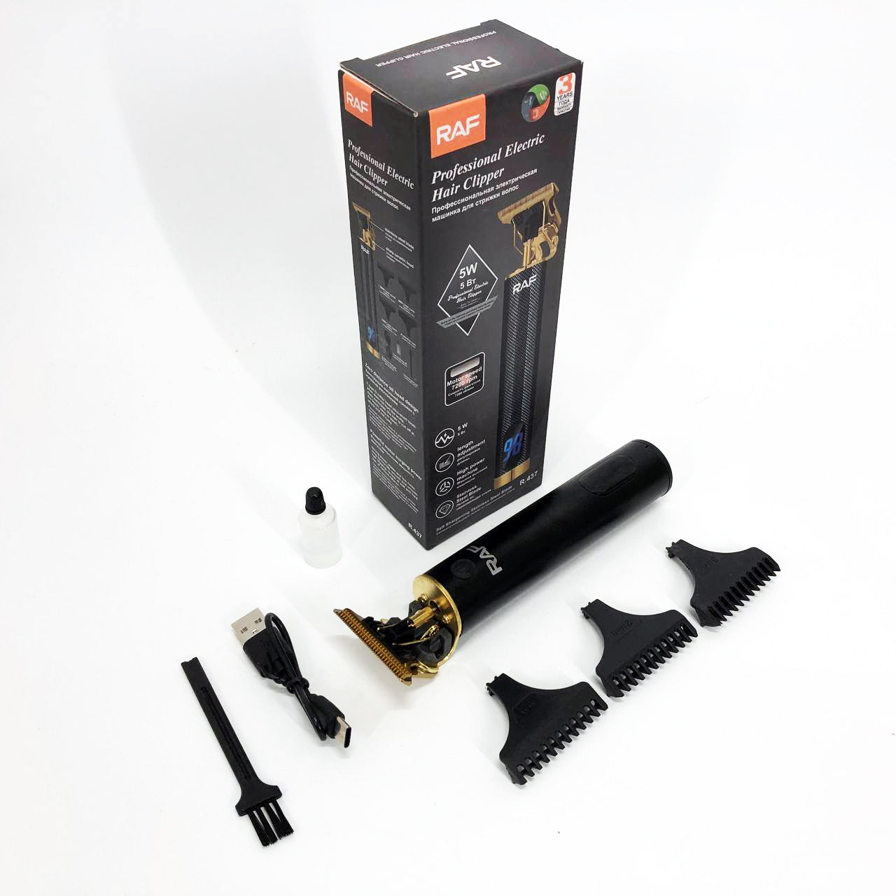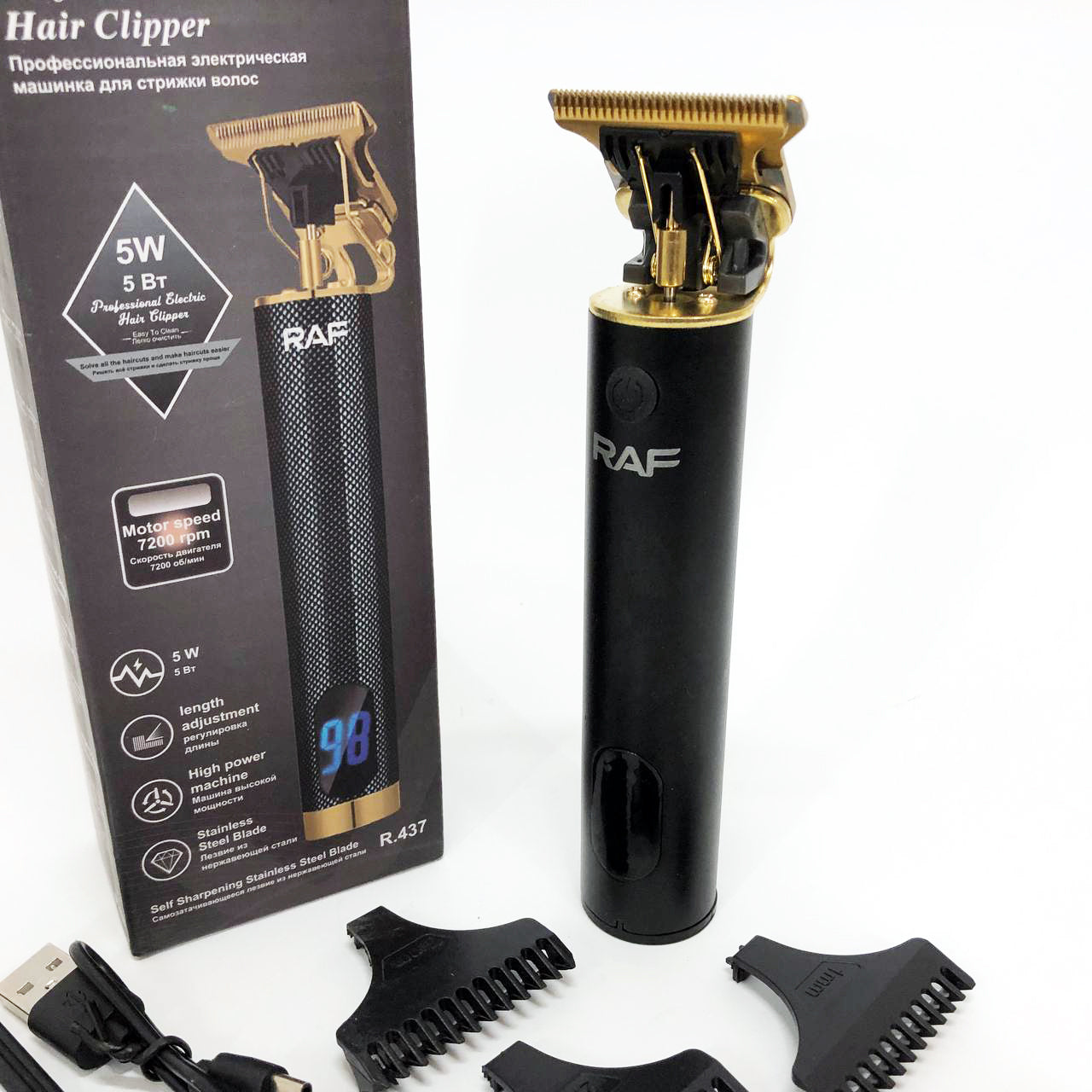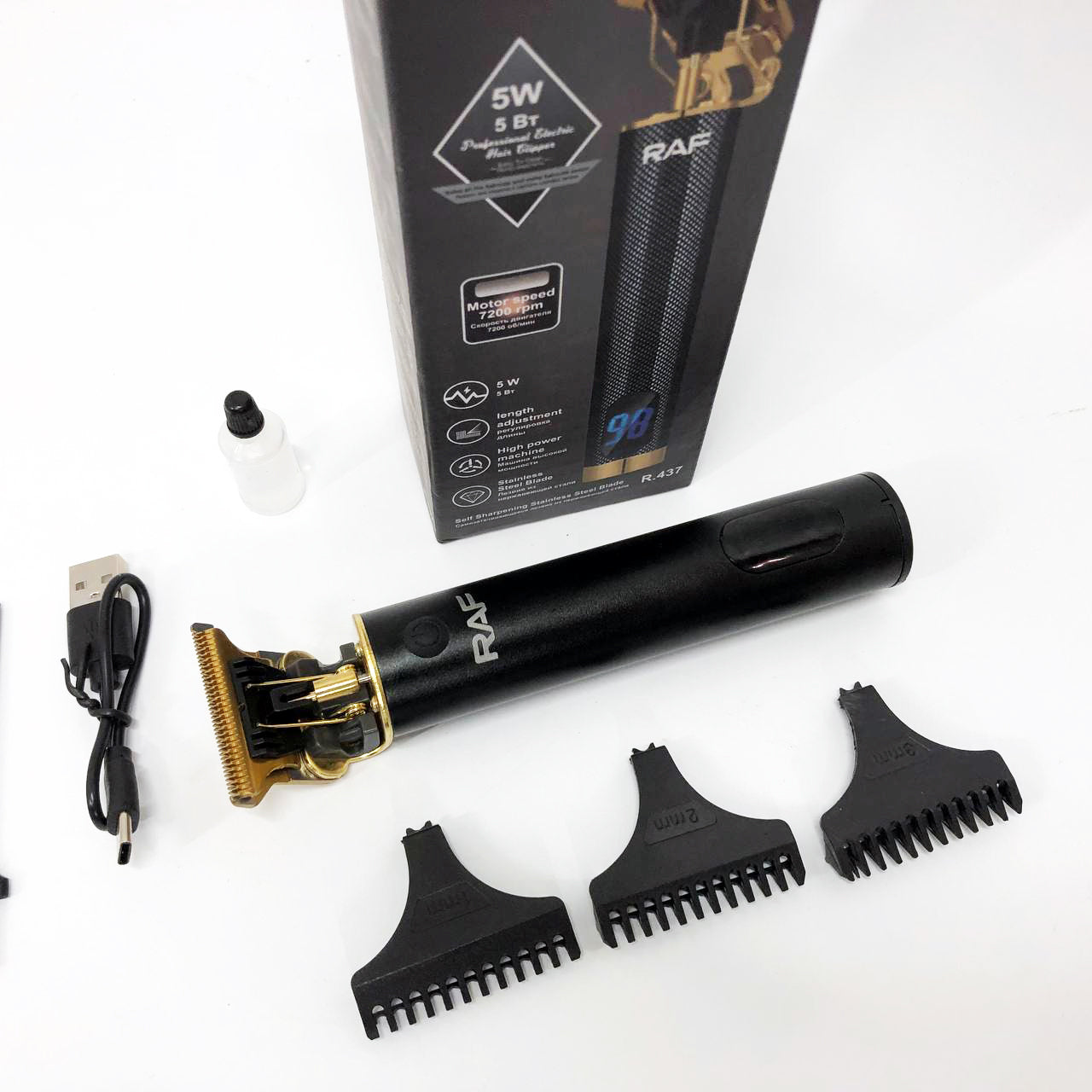 Машинка для стрижки волос и бороды с насадками Raf мужской триммер окантовочная машинка с зарядкой от USB